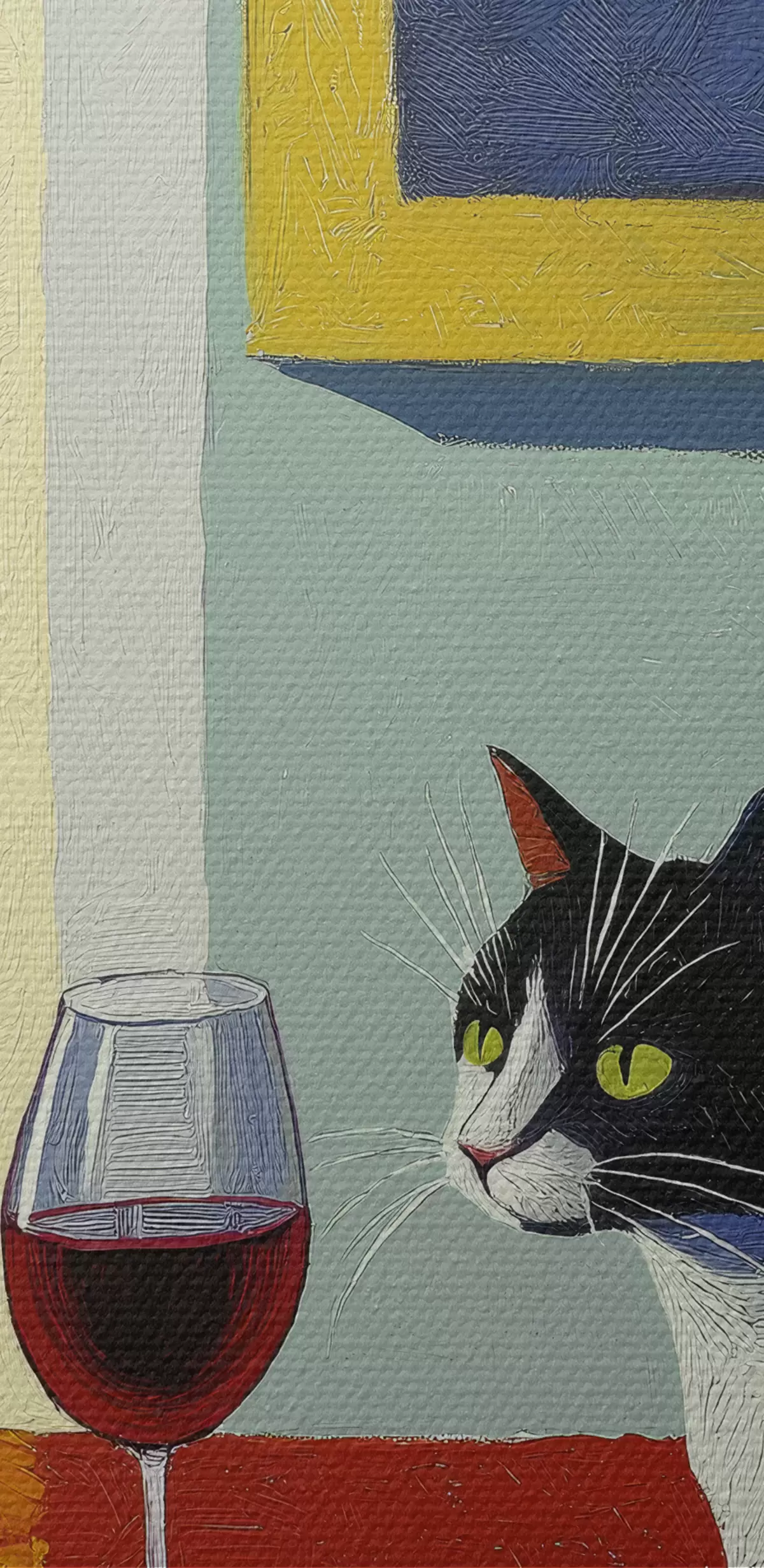 Gemälde Eine Katze und ein Glas Wein Art. s39913