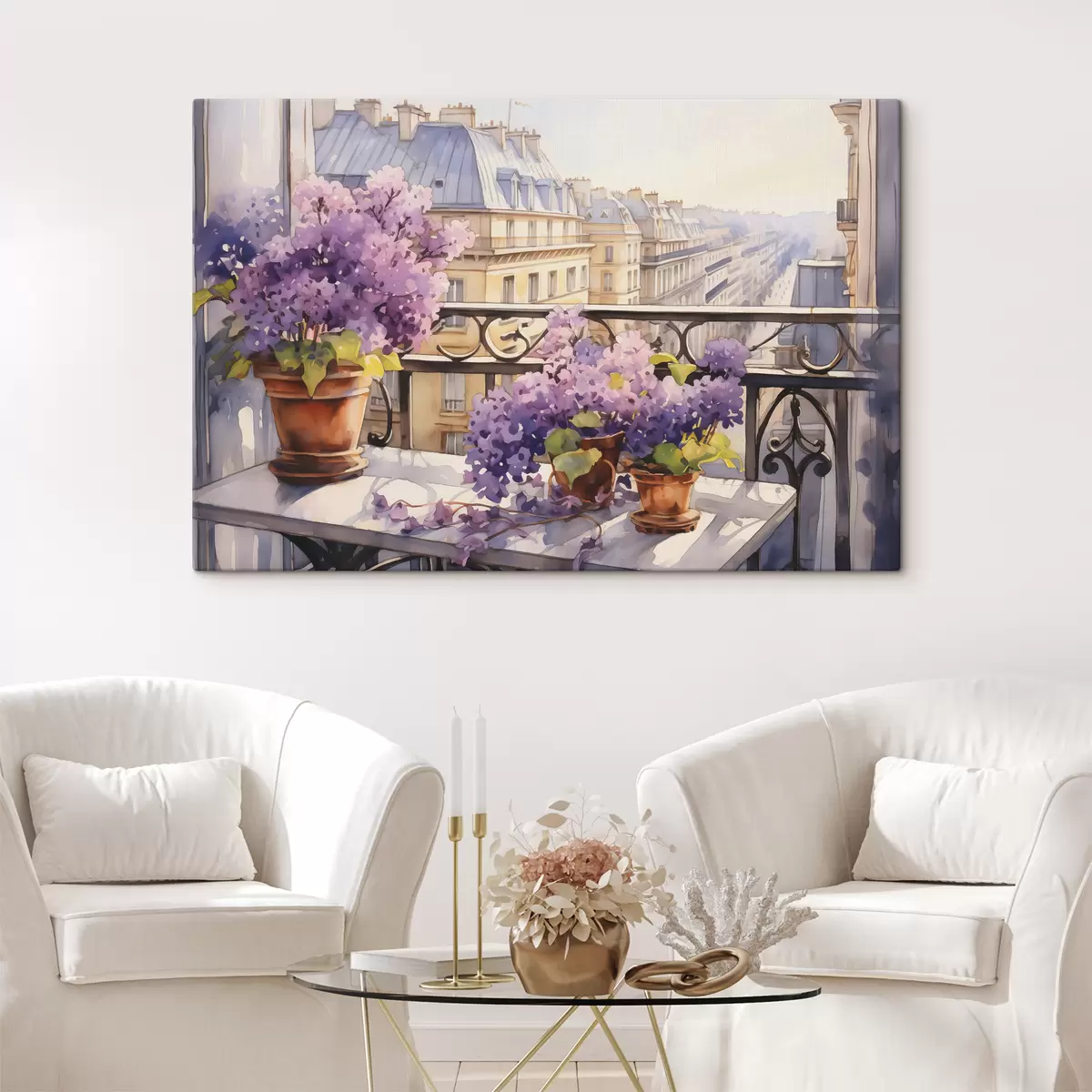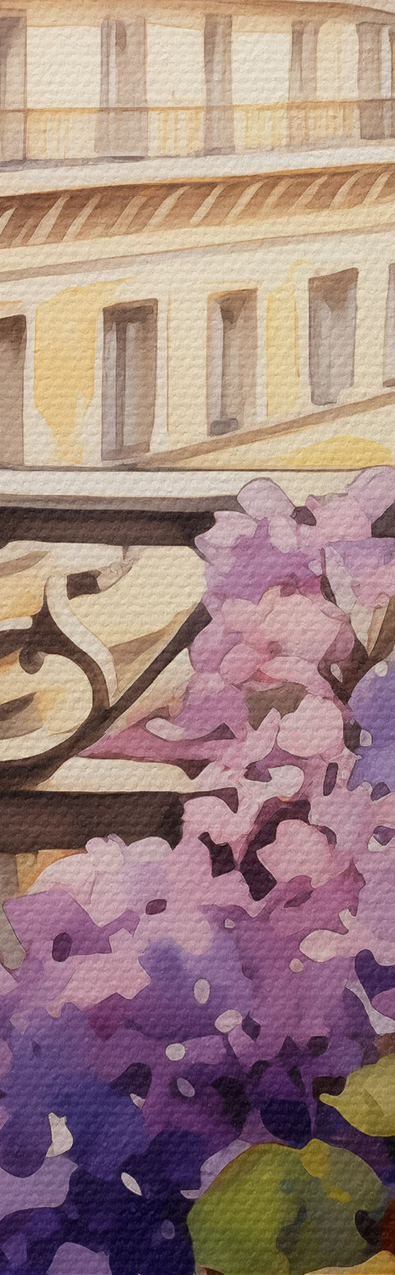 Fototapete Veilchen in einem Topf auf einem Balkon in Paris Aquarell s39931
