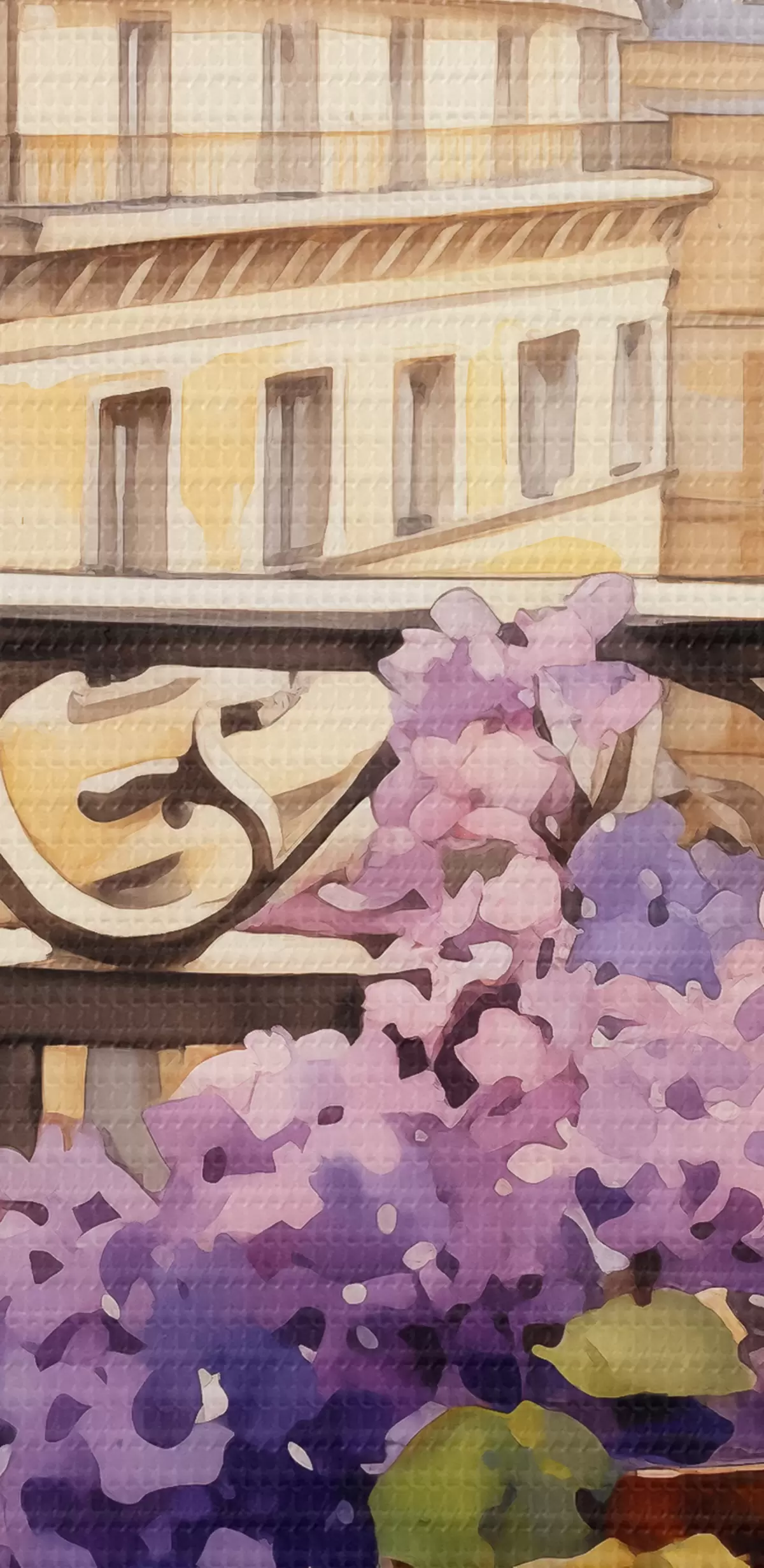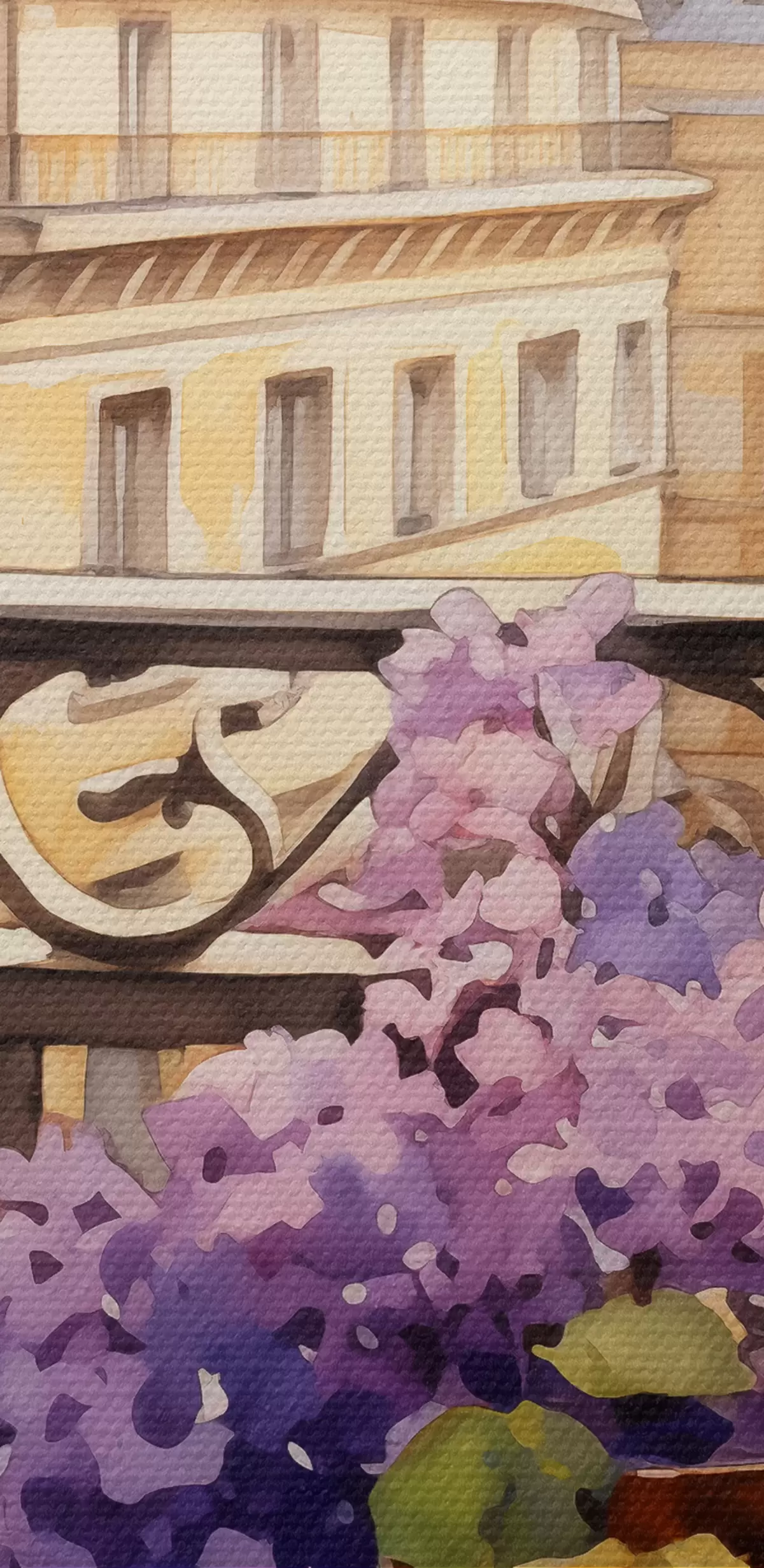 Fototapete Veilchen in einem Topf auf einem Balkon in Paris Aquarell s39931
