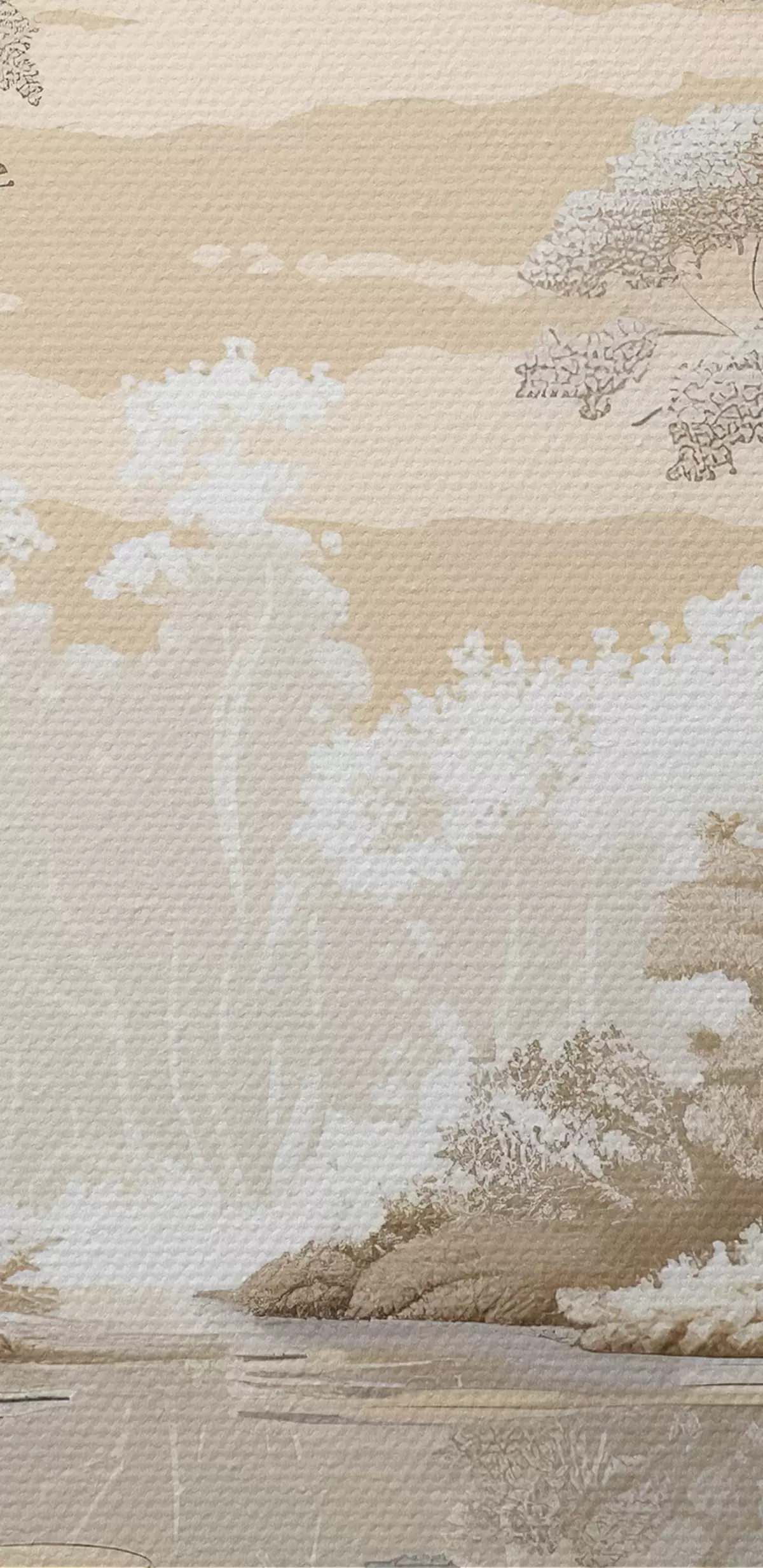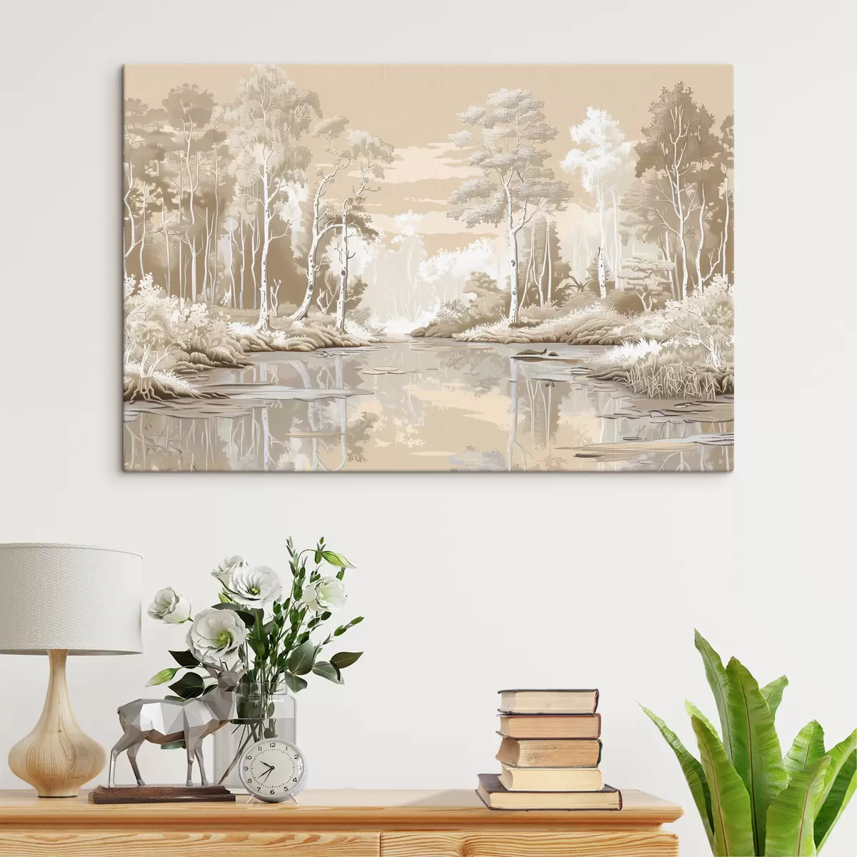 Gemälde Wunderschöne Waldlandschaft, sanfte Pastellfarben, Beige und Weiß Art. s39978