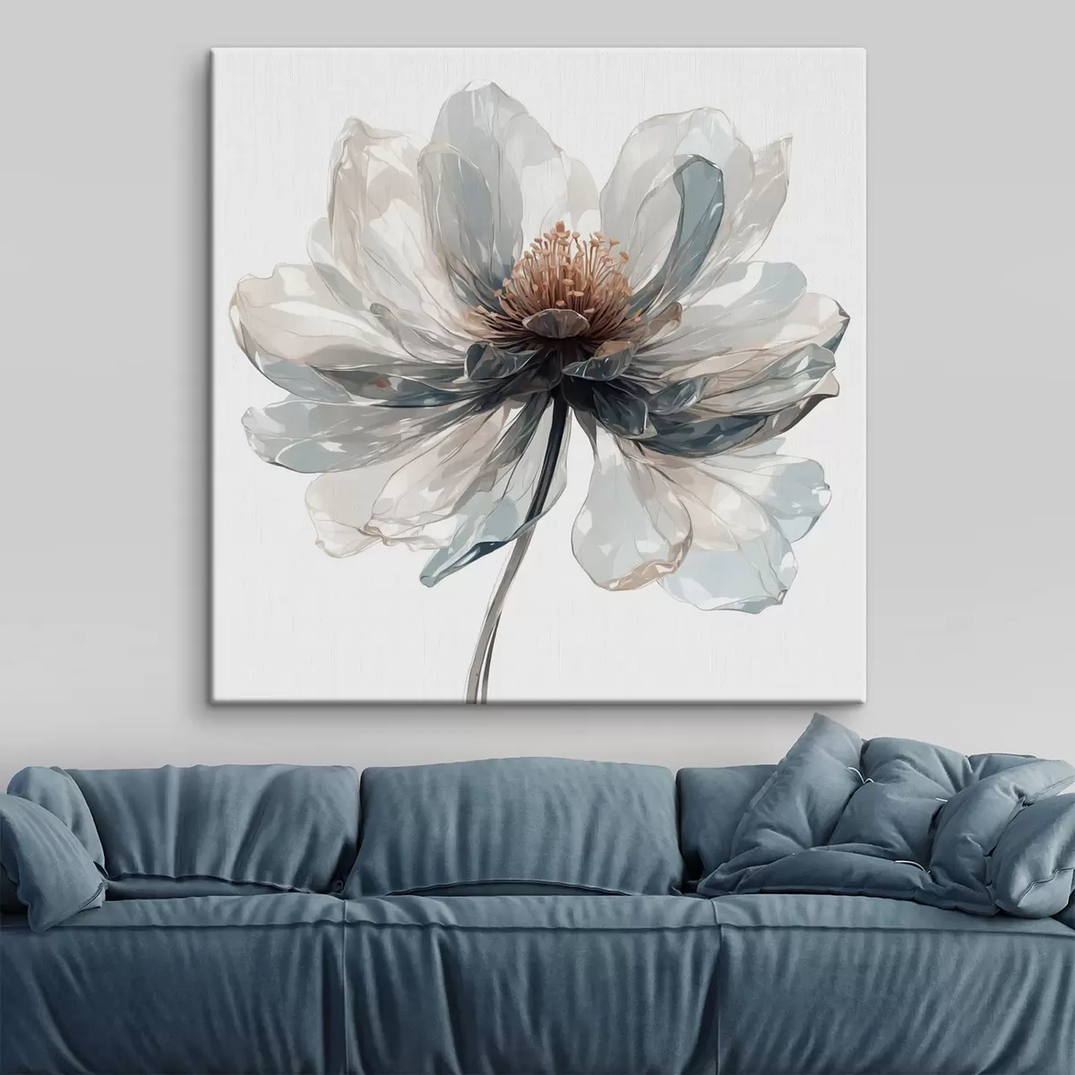 Gemälde Transparente blaue Blume auf weißem Hintergrund Art. s40067
