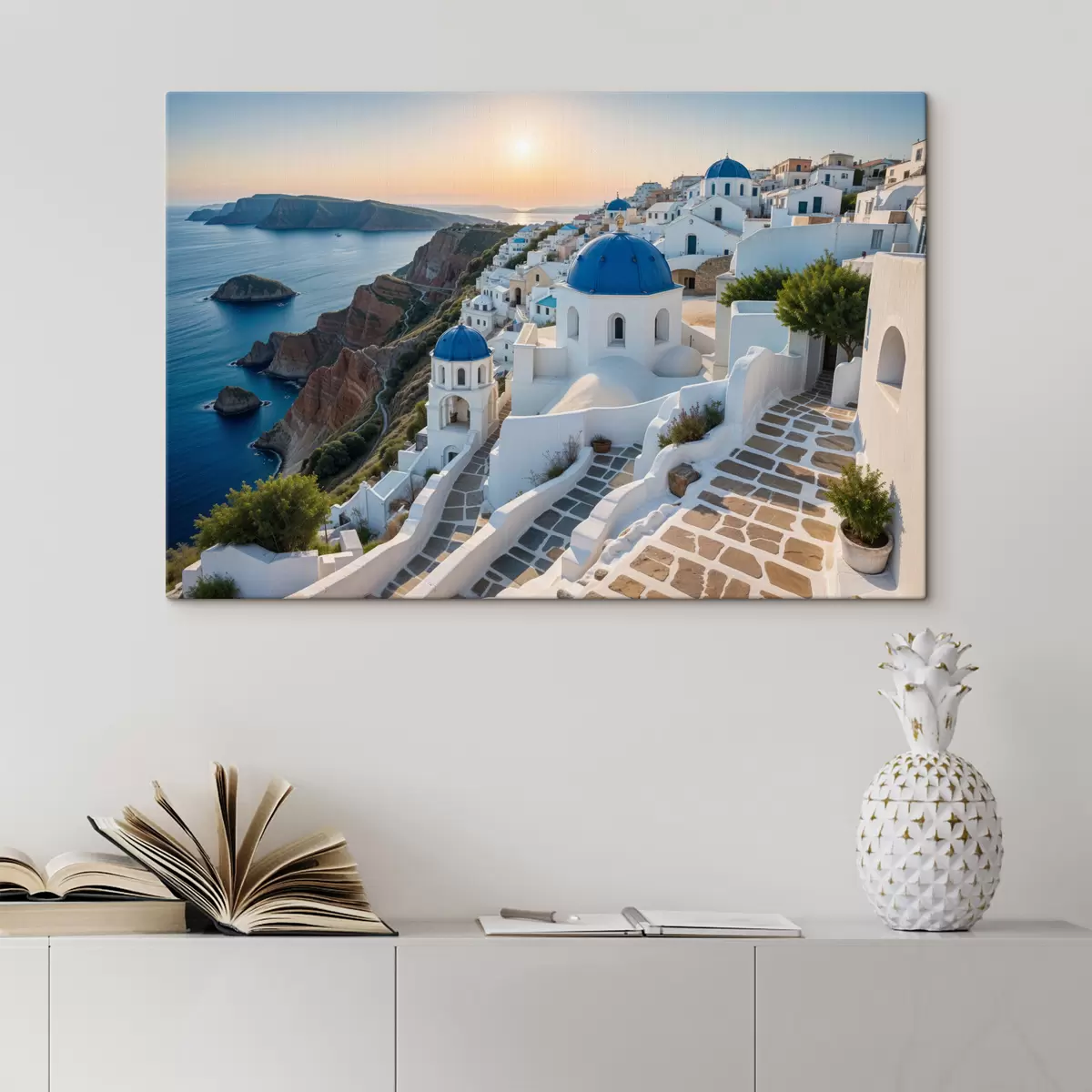 Gemälde Die Insel Santorini, Griechenland. Die Stadt liegt auf einem Hügel mit Blick auf die Ägäis Art. s40160