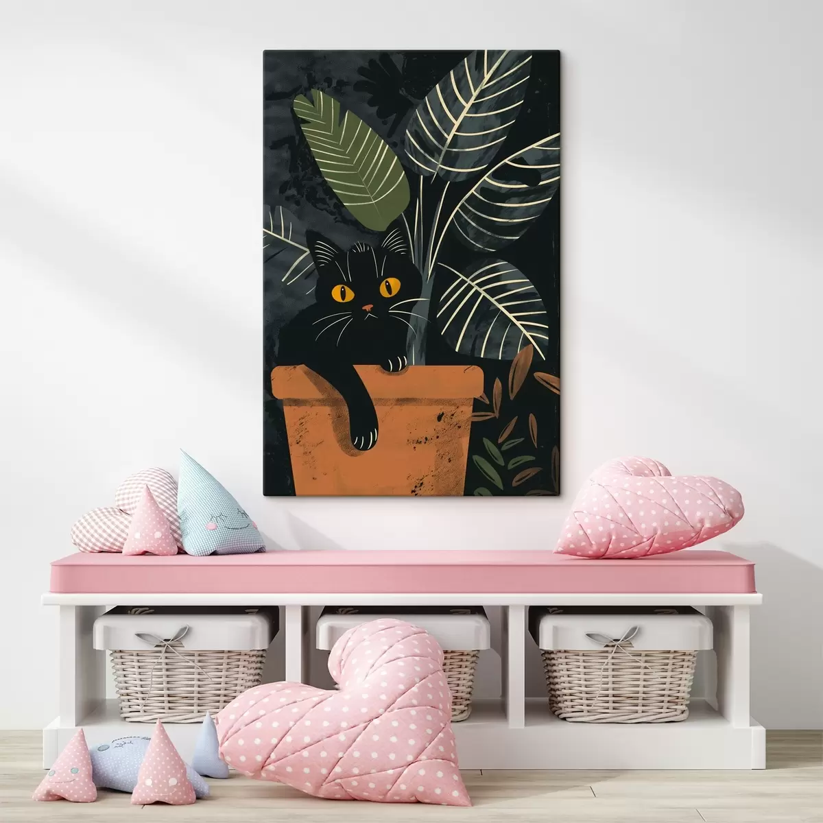 Gemälde Katze in einem Topf mit einer Blume Art. s40268