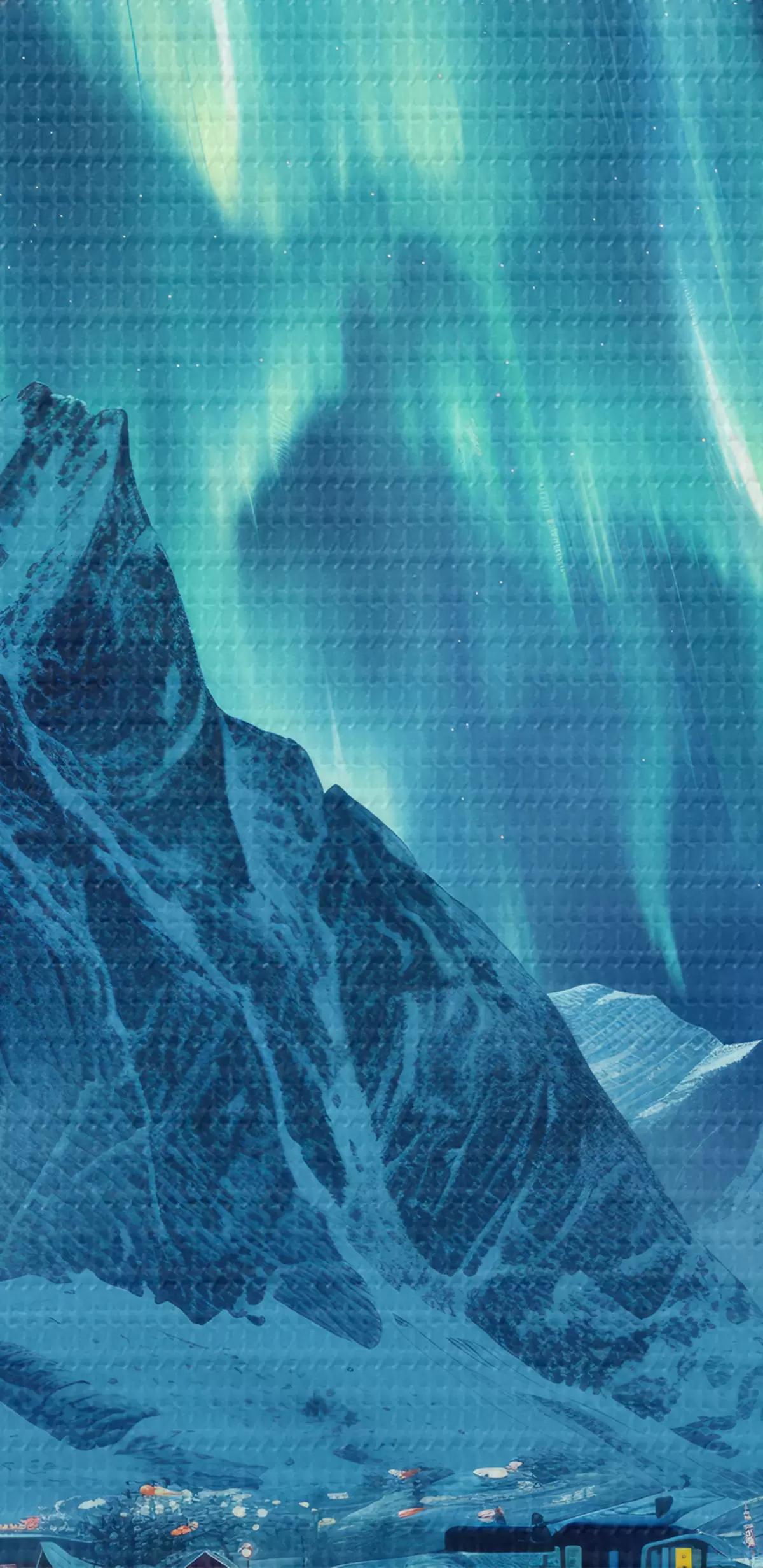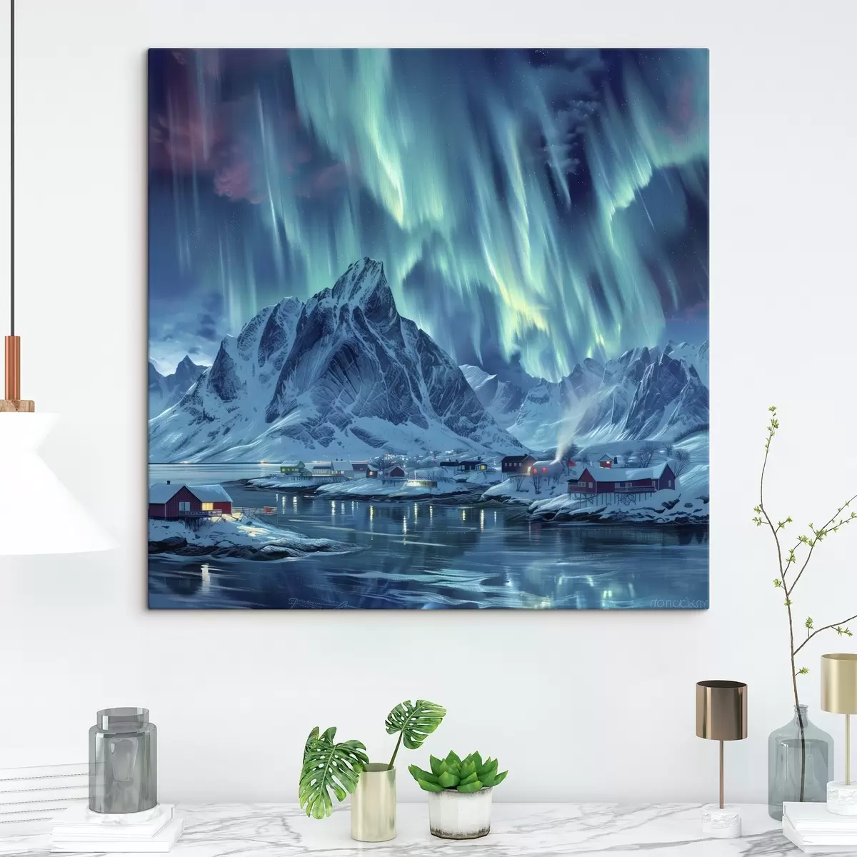 Gemälde Magische Nordlichter, Winterdorf in Norwegen Art. s40301
