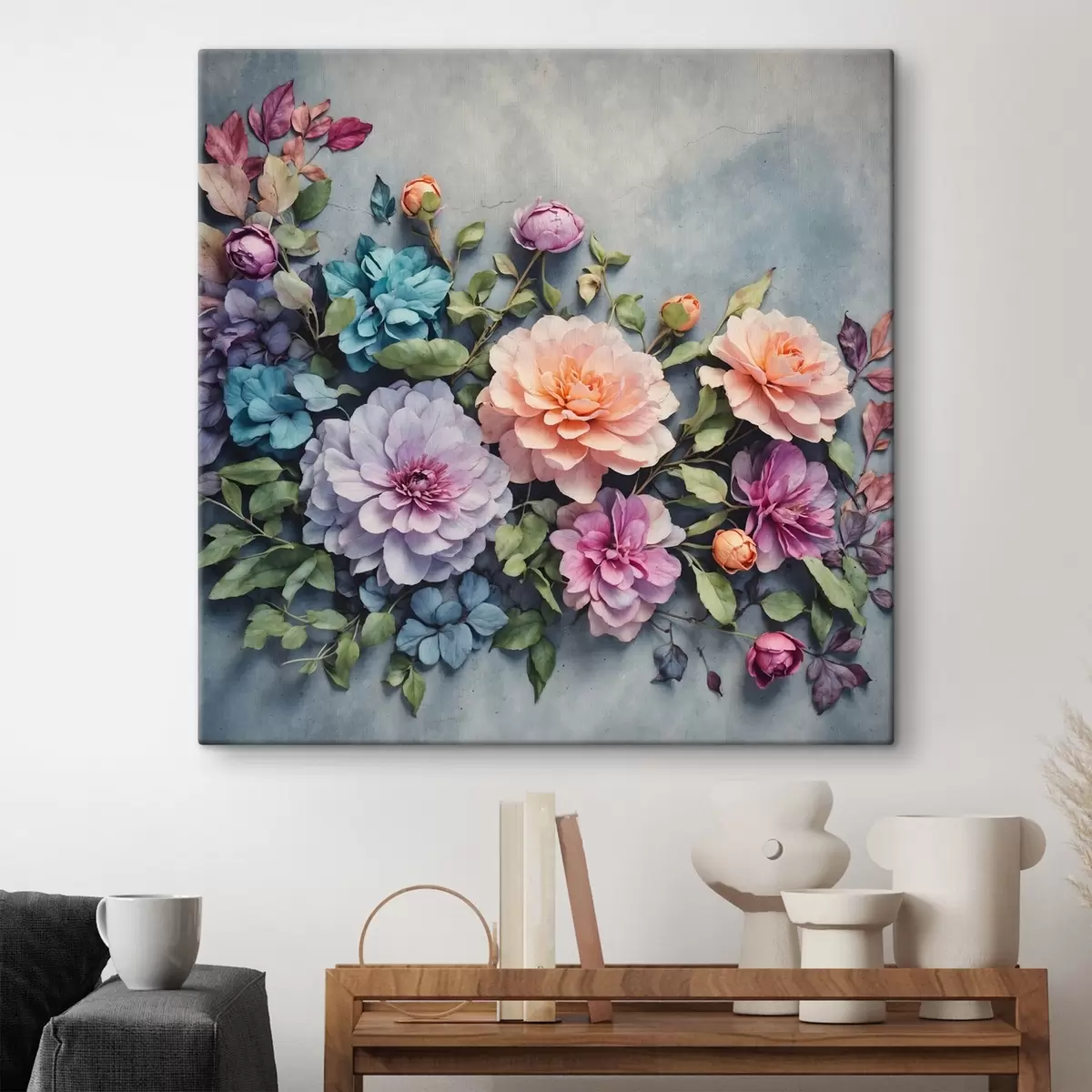 Gemälde Blumen und Blätter auf blauem Hintergrund Art. s40346