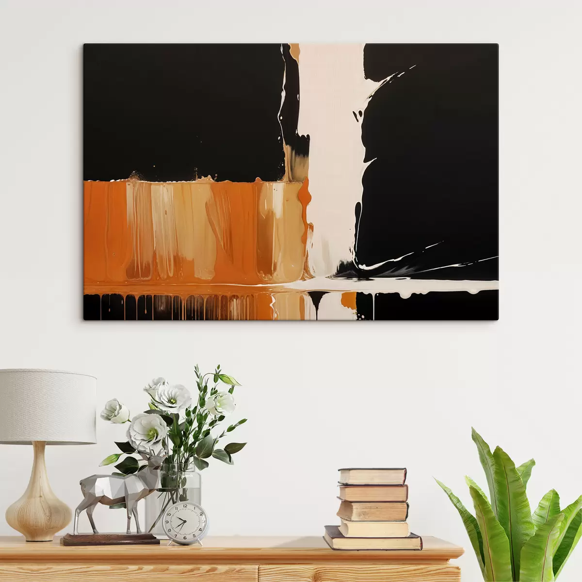 Gemälde Ein dunkles abstraktes Gemälde mit kräftigen Pinselstrichen in den Farben Schwarz, Orange und Weiß Art. s40402