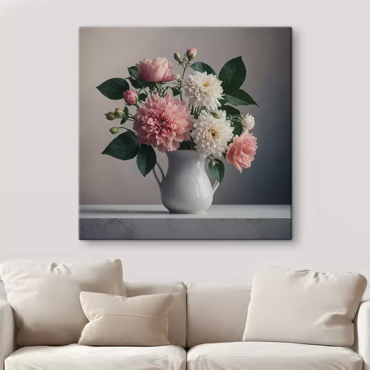 Gemälde Blumen in einer weißen Vase auf einem Tisch Art. s40472