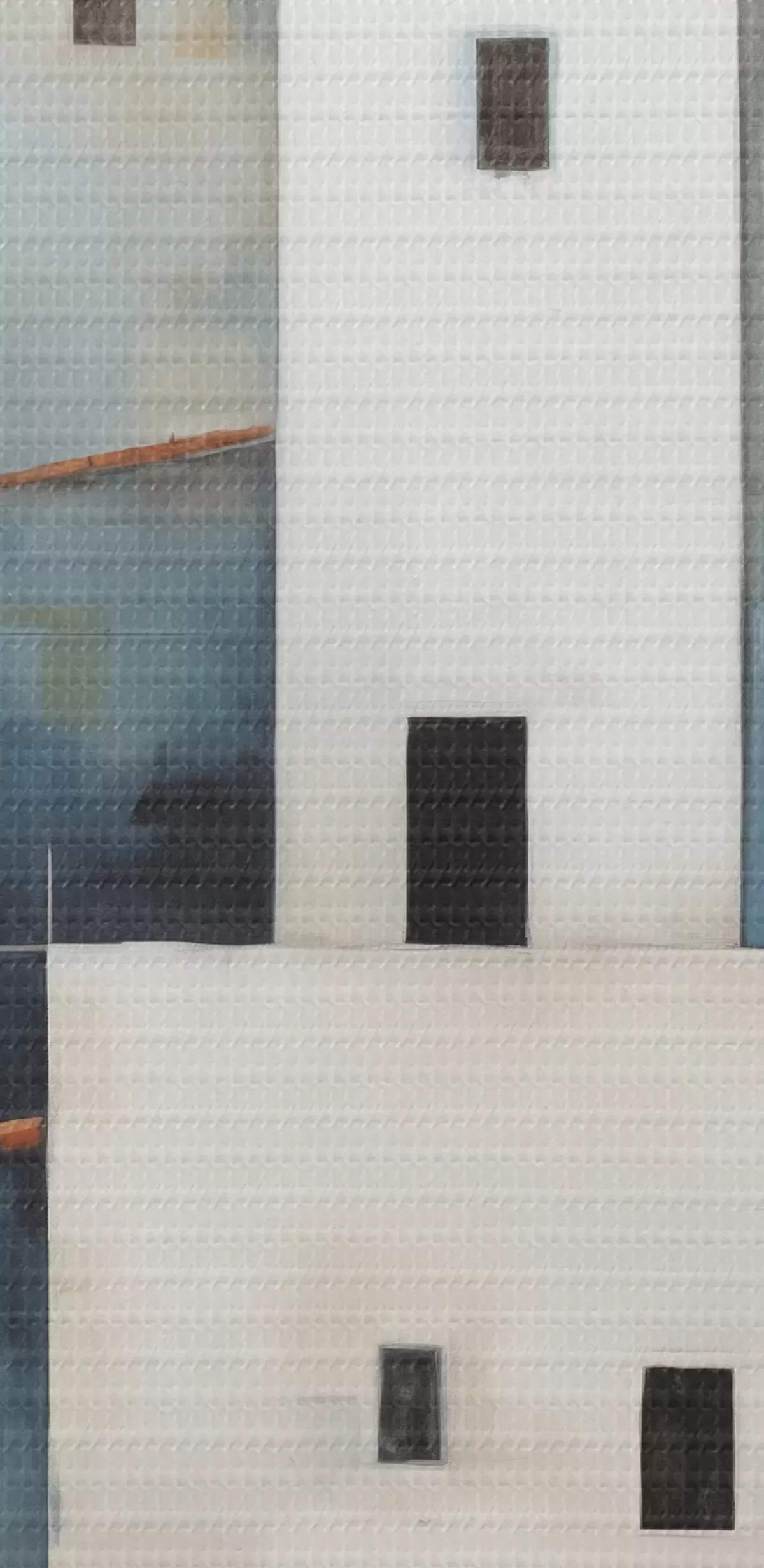 Fototapete Weiße stilisierte Häuser abstrakt, rot, orange, gelb, blau s40531