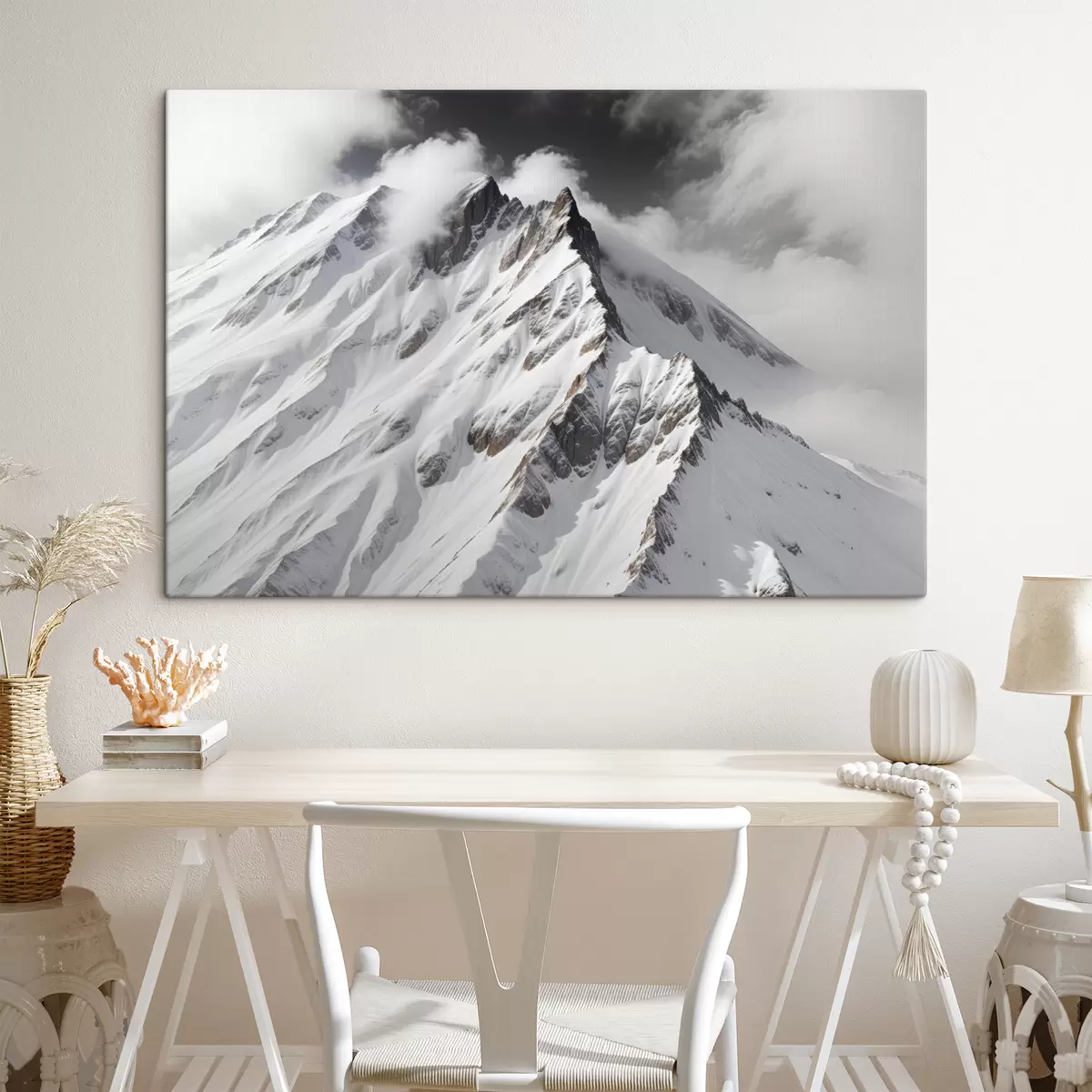Gemälde Schneebedeckte schwarz-weiße Berggipfel in einer wolkigen, dramatischen Landschaft Art. s40553