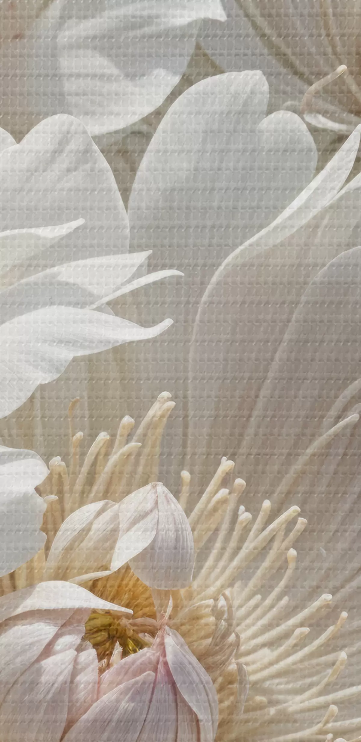 Gemälde Eine Nahaufnahme mehrerer großer, weißer Pfingstrosenblüten mit weichen, zarten Blütenblättern und blassgelber Mitte Art. s40575
