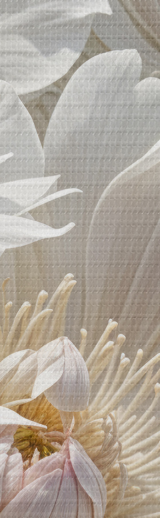 Fototapete Eine Nahaufnahme mehrerer großer, weißer Pfingstrosenblüten mit weichen, zarten Blütenblättern und blassgelber Mitte s40575