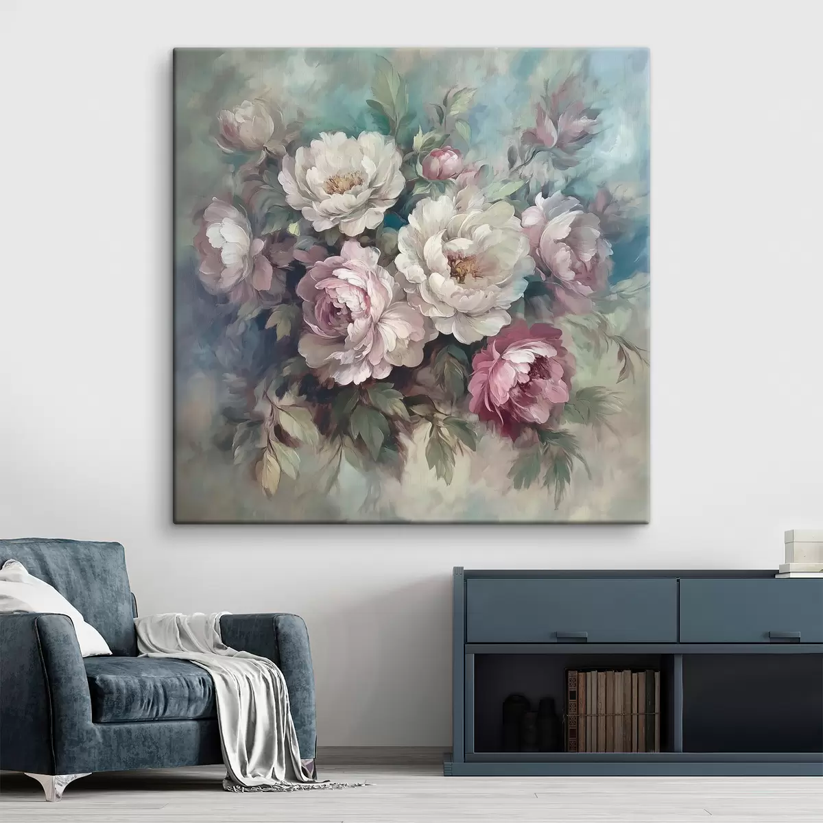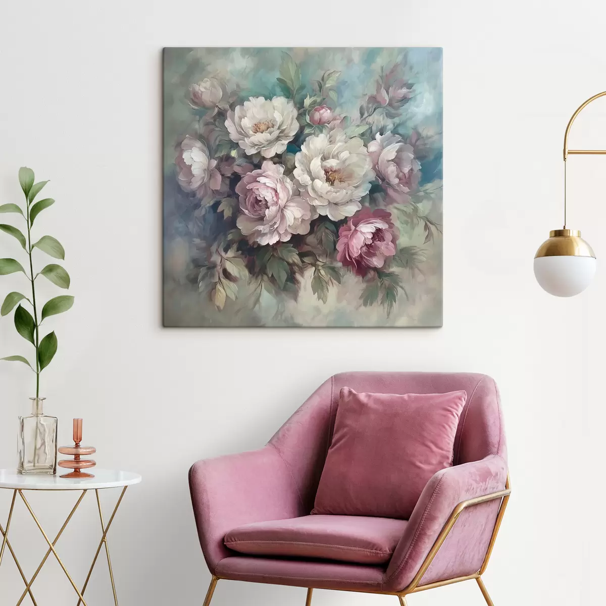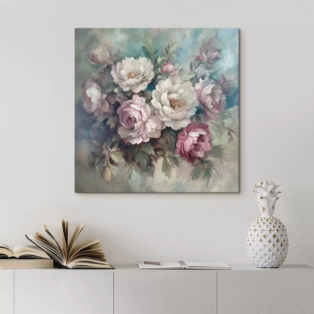 Gemälde Blumenstrauß aus rosa und weißen Pfingstrosen in Ölgemälde Art. s40582