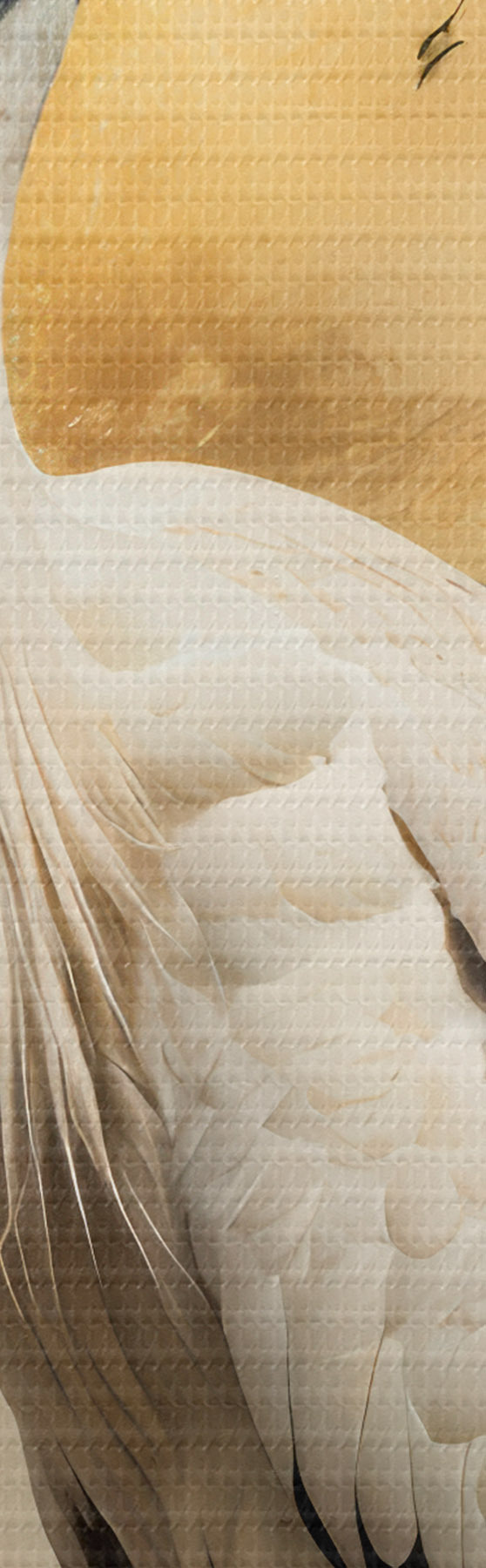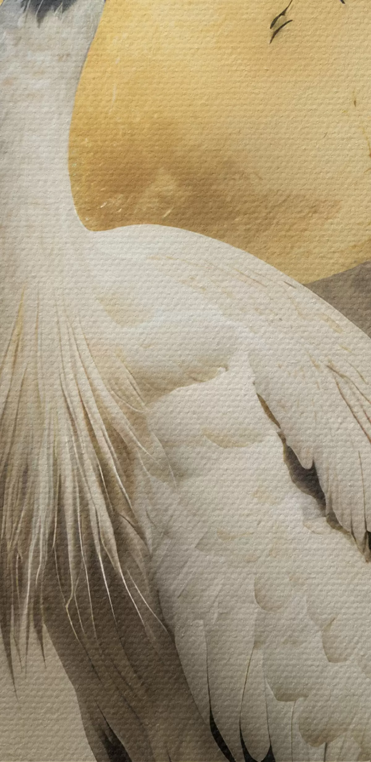 Gemälde Ein majestätischer grauer Kranich, der vor einem großen Vollmond steht, mit einem unscharfen natürlichen Hintergrund Art. s40591