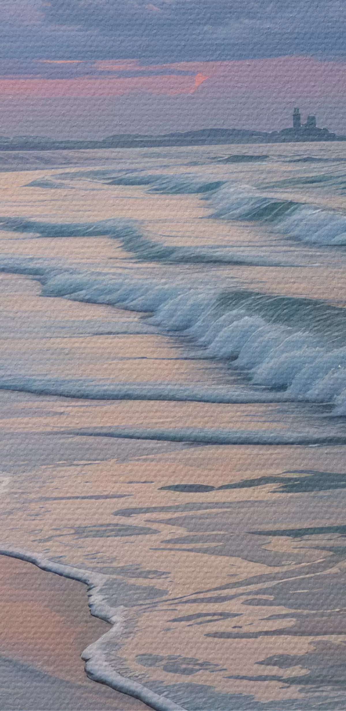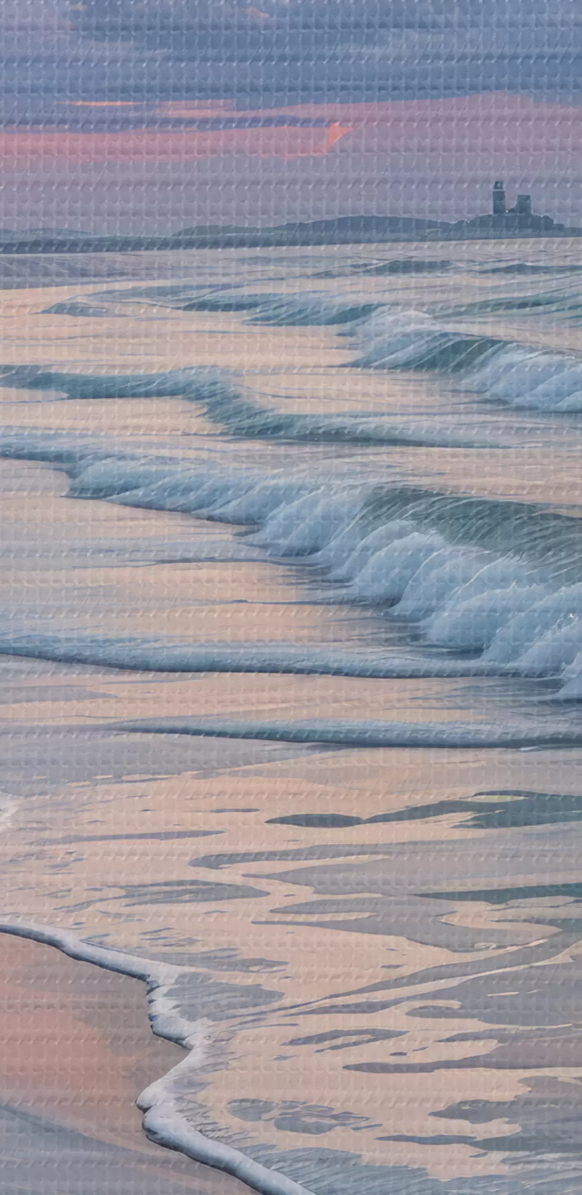 Gemälde Eine ruhige Strandszene bei Sonnenuntergang, mit sanften Wellen, die gegen den Sandstrand schlagen Art. s40606