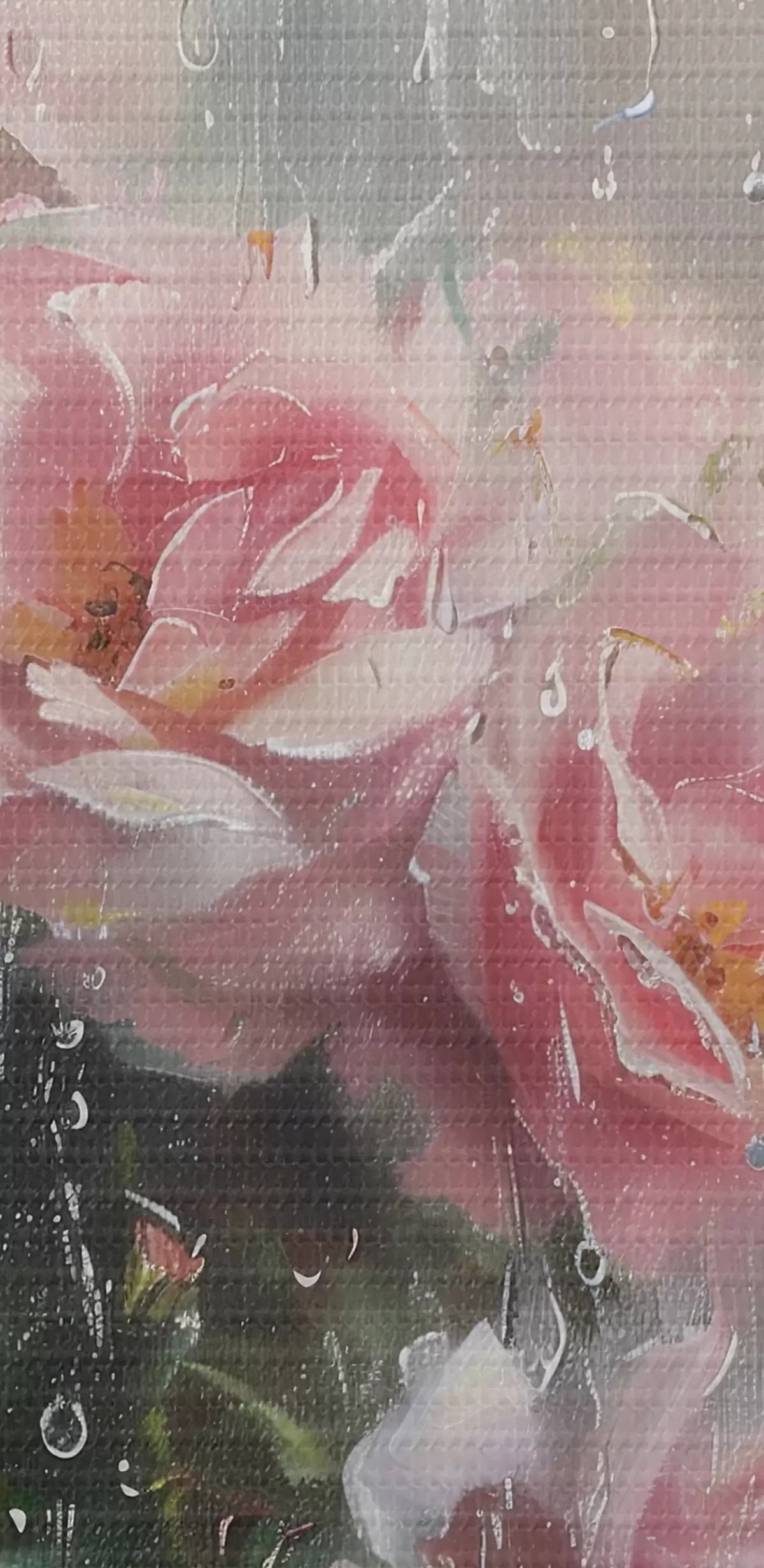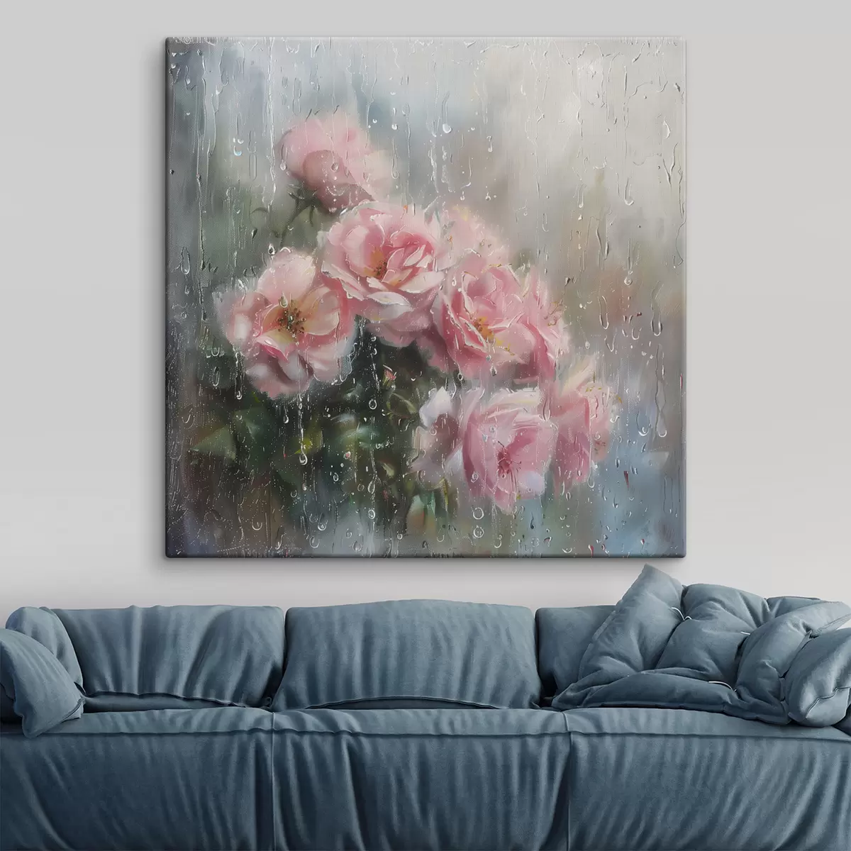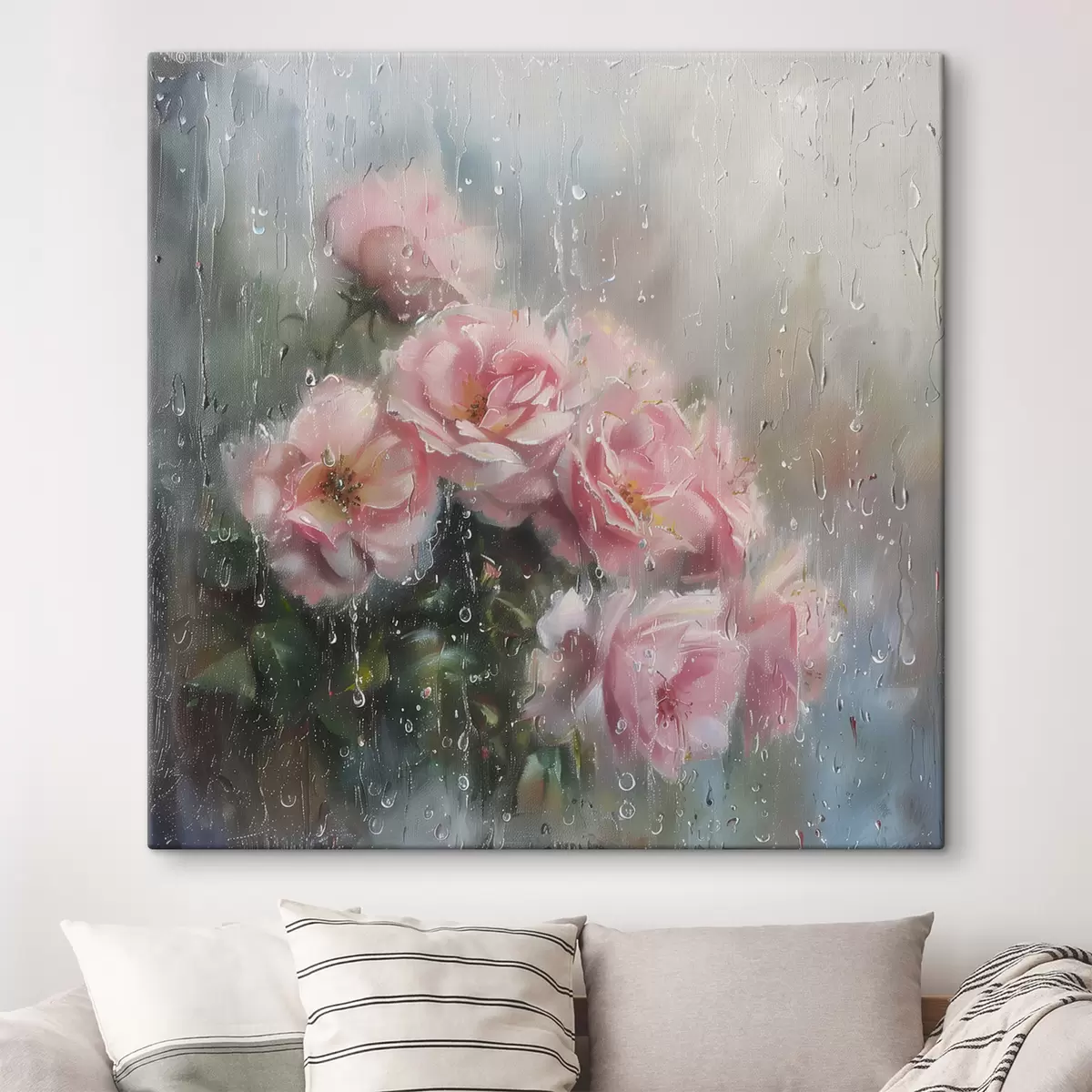 Gemälde Ein Strauß rosa Rosen vor dem Fenster bei regnerischem Wetter Art. s40656