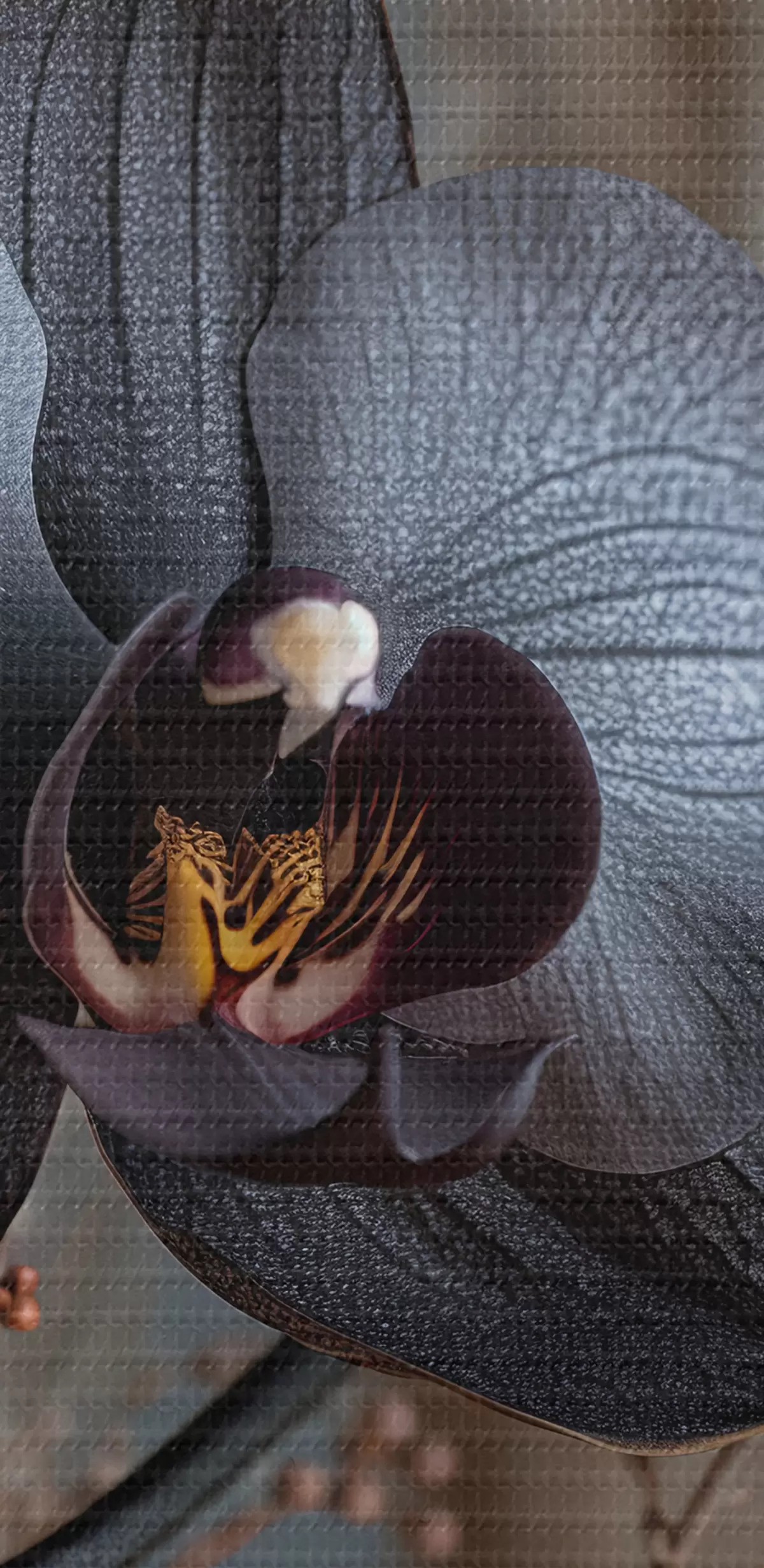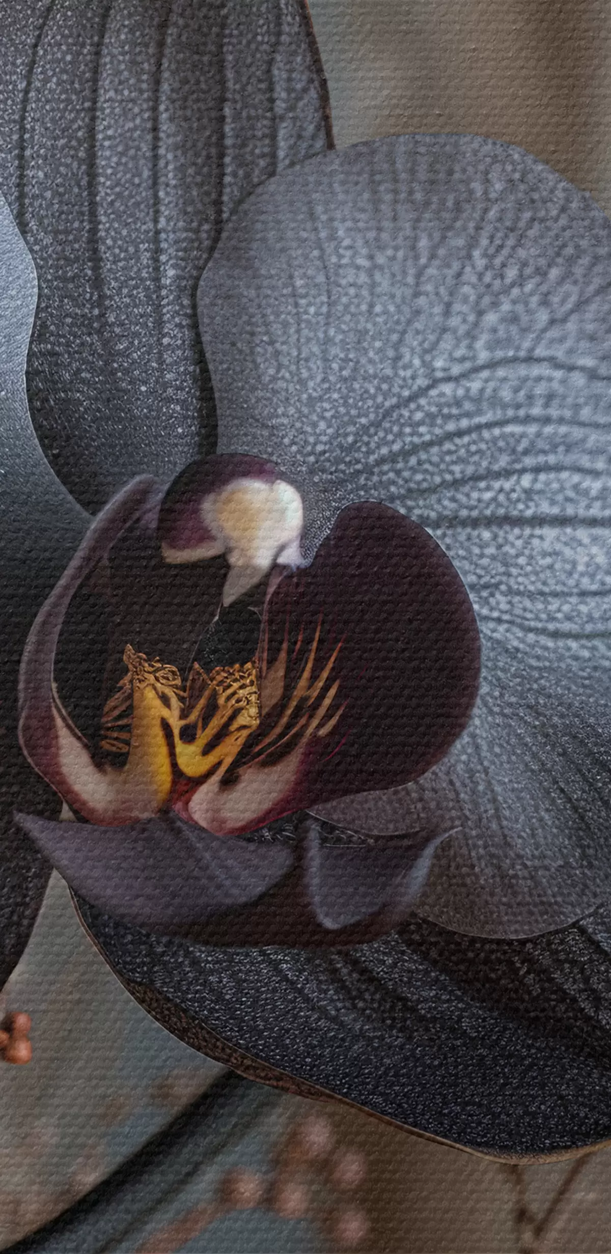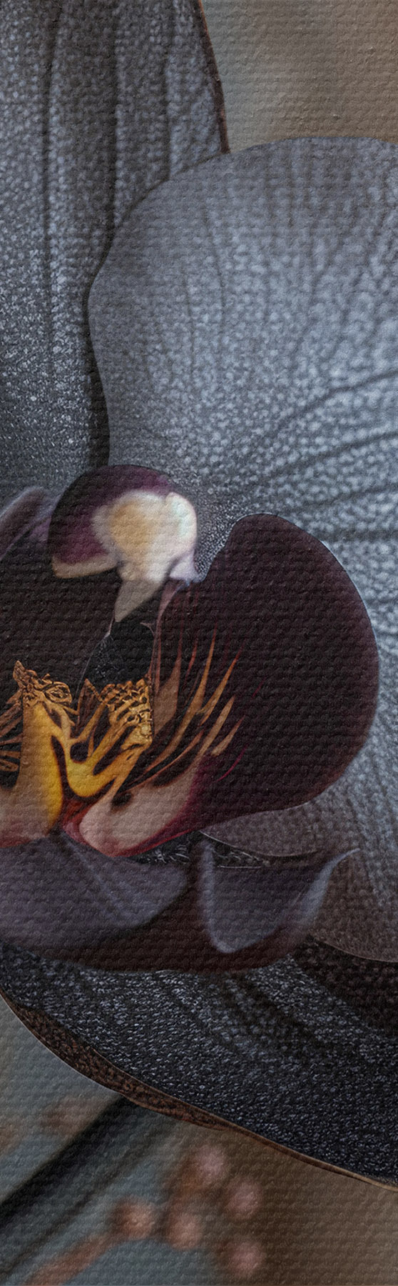Fototapete Elegantes Blumenarrangement aus schwarzen Orchideen und anderen Trockenblumen s40661