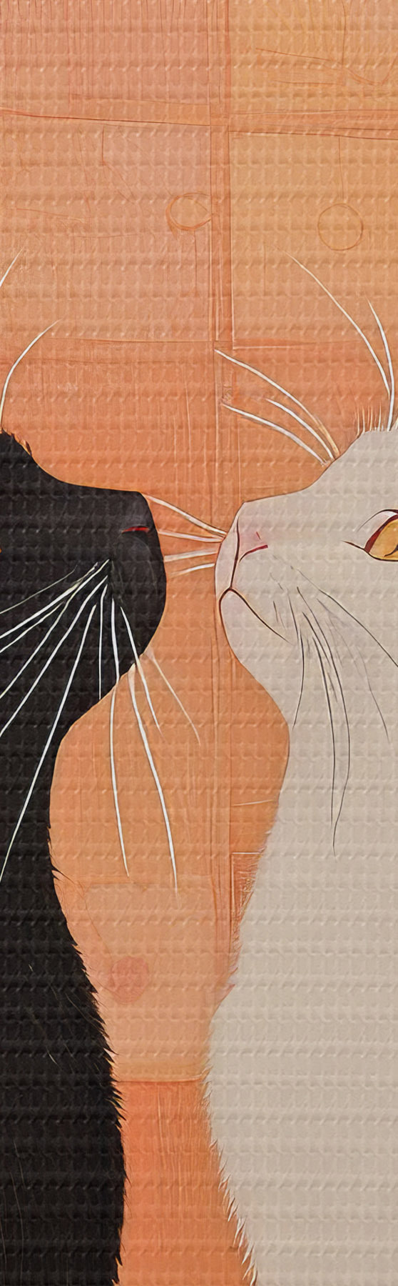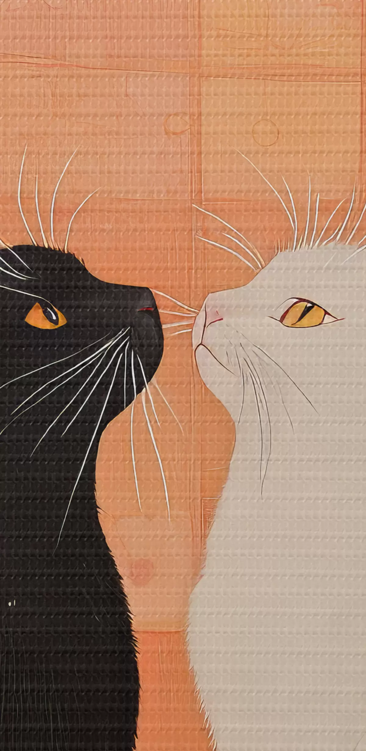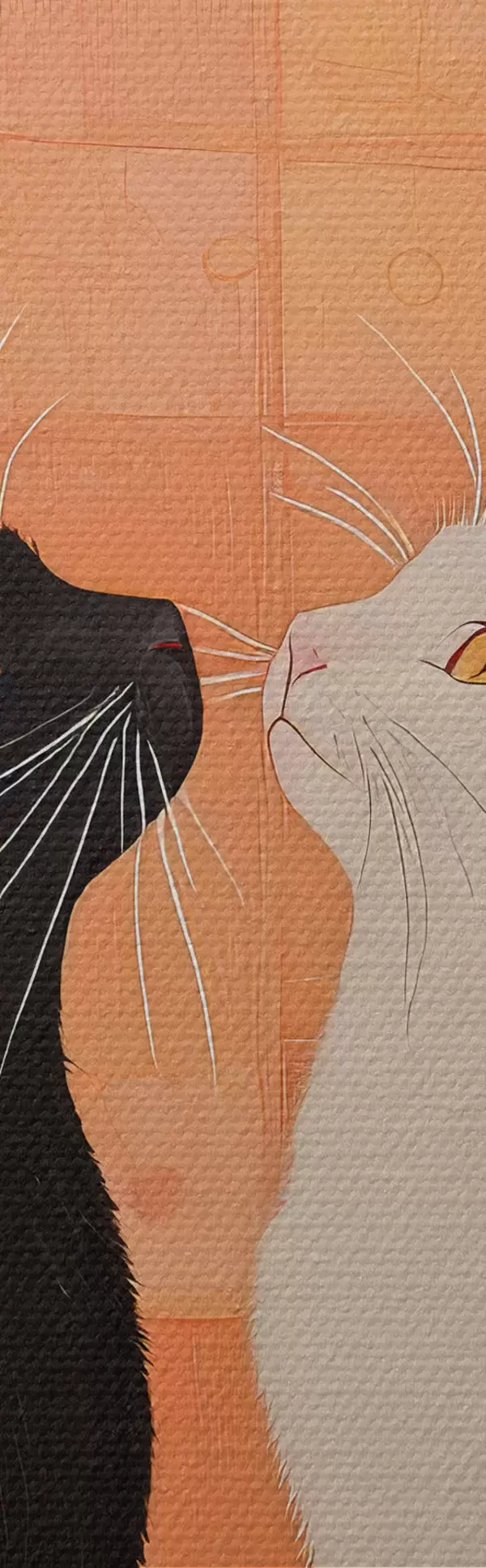 Gemälde Schwarze und weiße Katze schauen sich bei Sonnenuntergang niedlich an Art. s40669
