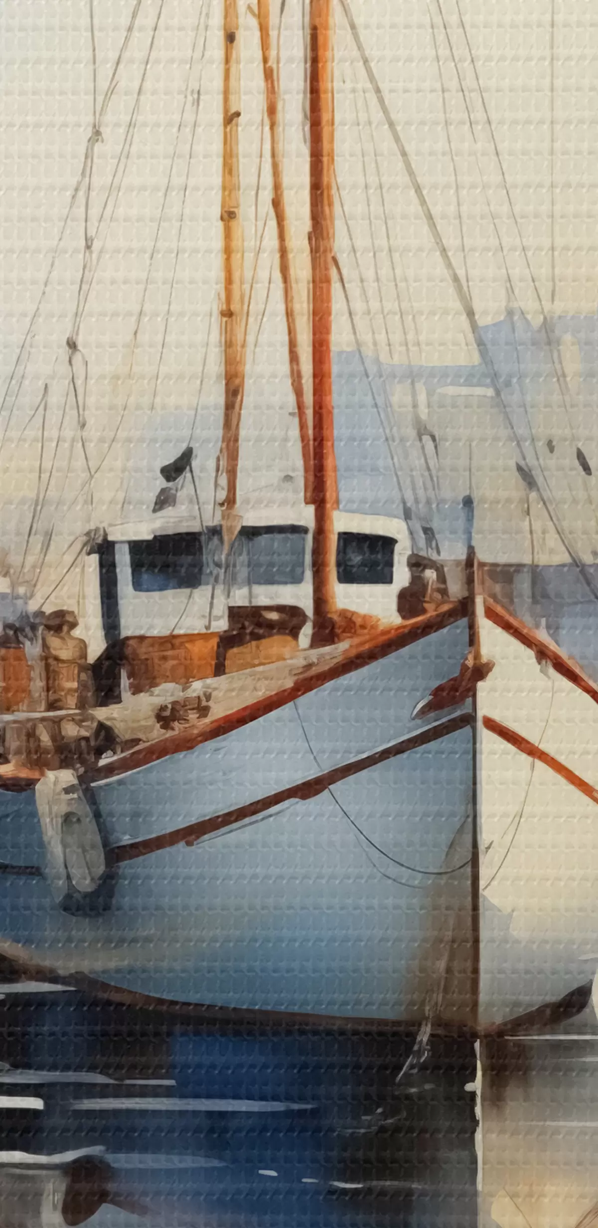 Fototapete Fischerboot am Pier auf dem Meer nass Aquarell s40688