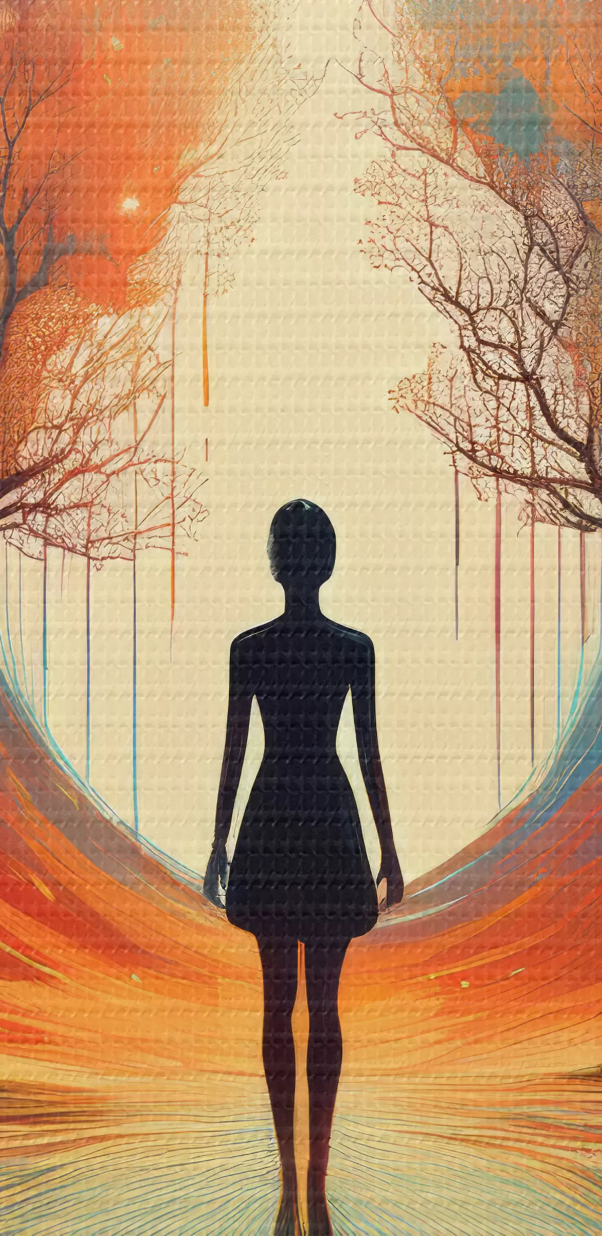Gemälde silhouette zwischen Bäumen, Selbsterkenntnis, Selbstreflexion Art. s40713