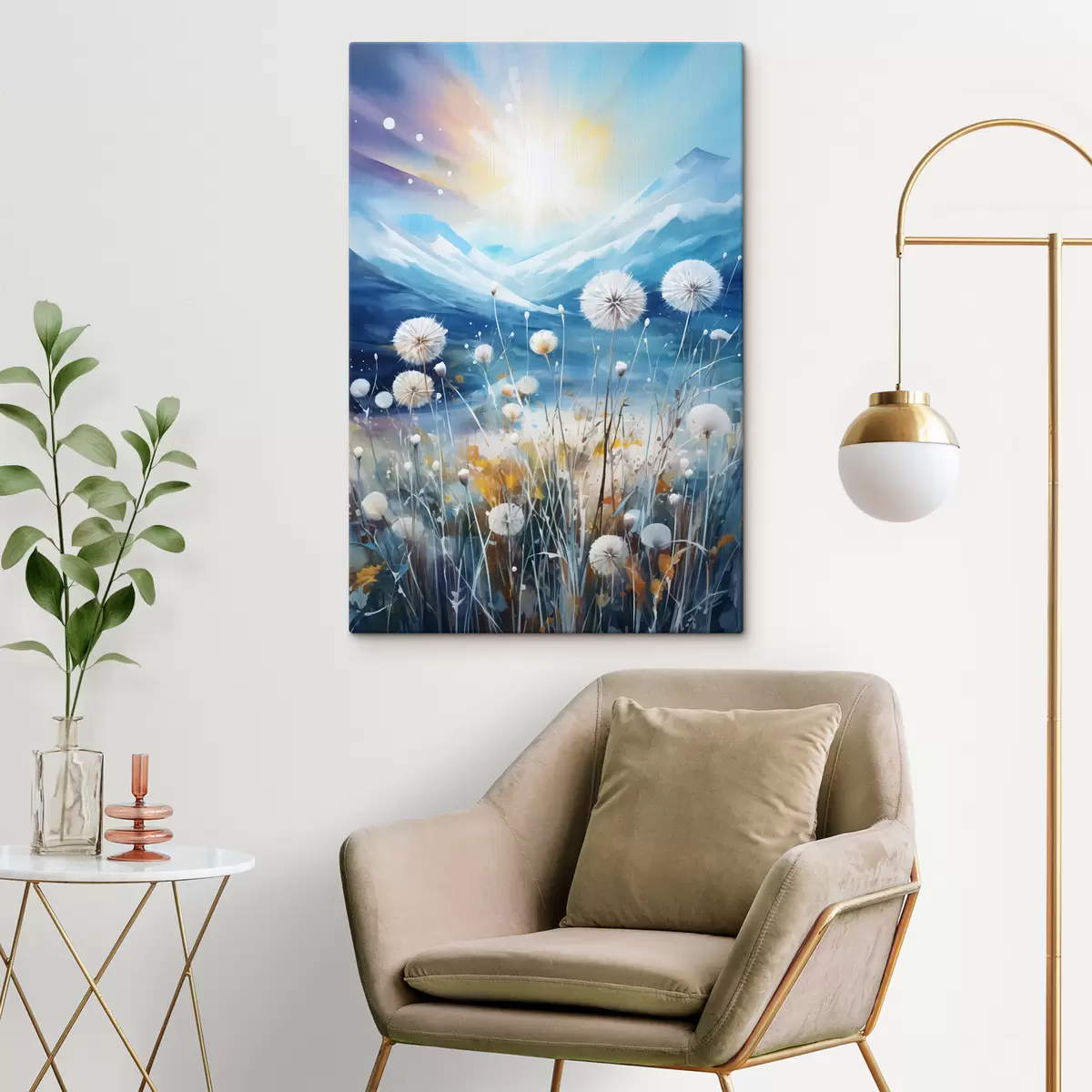 Gemälde Sonnenbeschienene Berge und Löwenzahnblüten Art. s40720