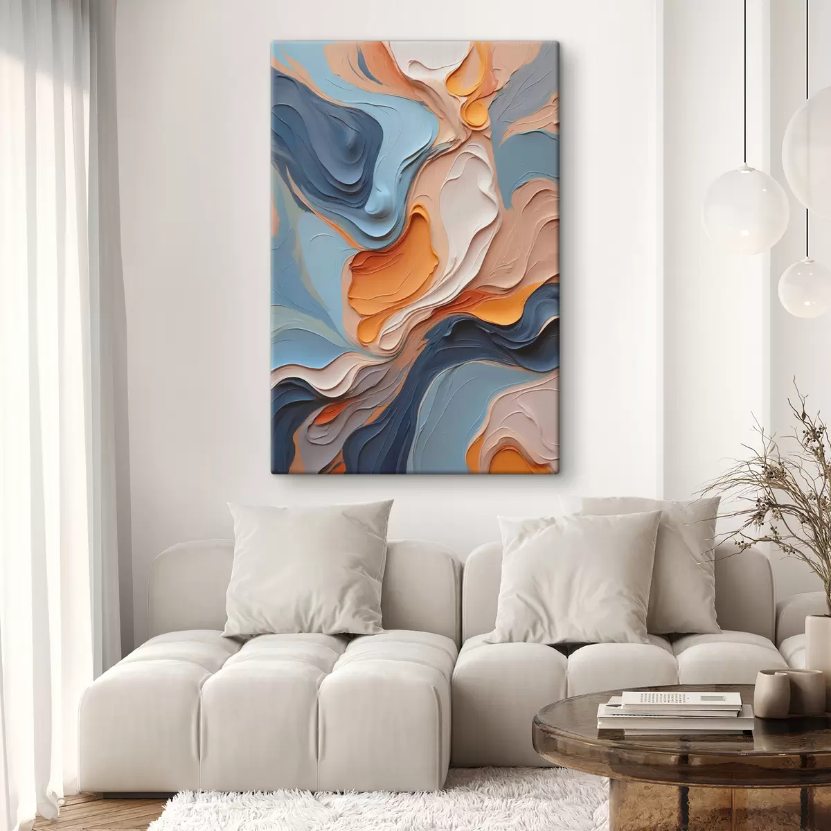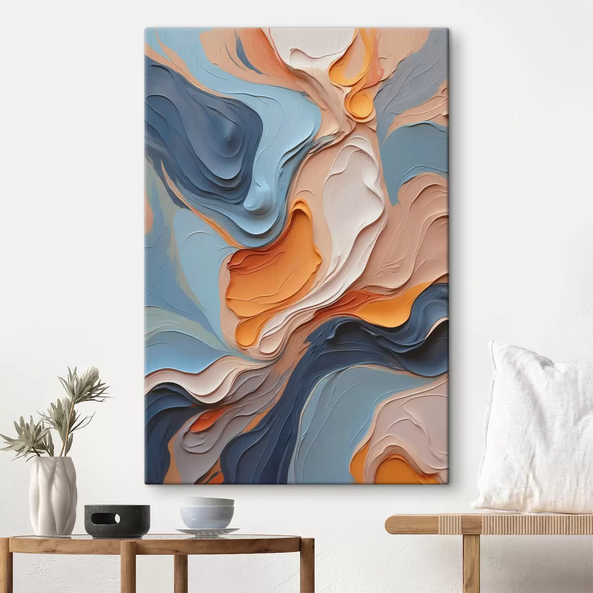 Gemälde Abstraktion in Blau- und Orangetönen mit imitierter Textur Art. s40743
