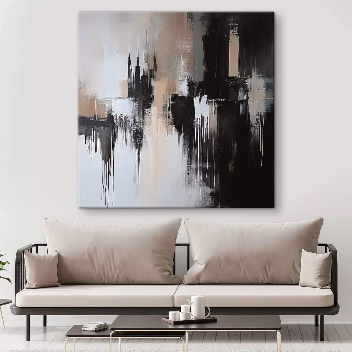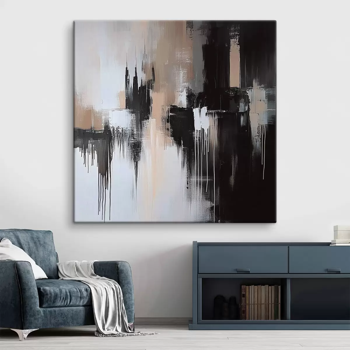Gemälde Abstraktion in Schwarz- und Beigetönen Art. s40794