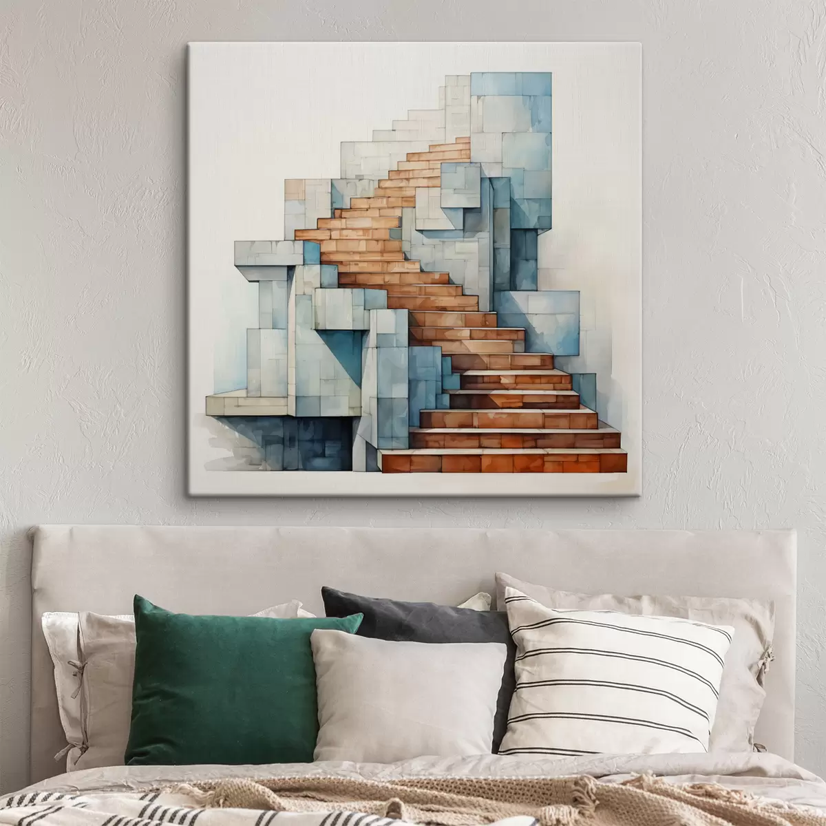 Gemälde Steintreppe abstrakte architektonische Landschaft Aquarell Art. s40891