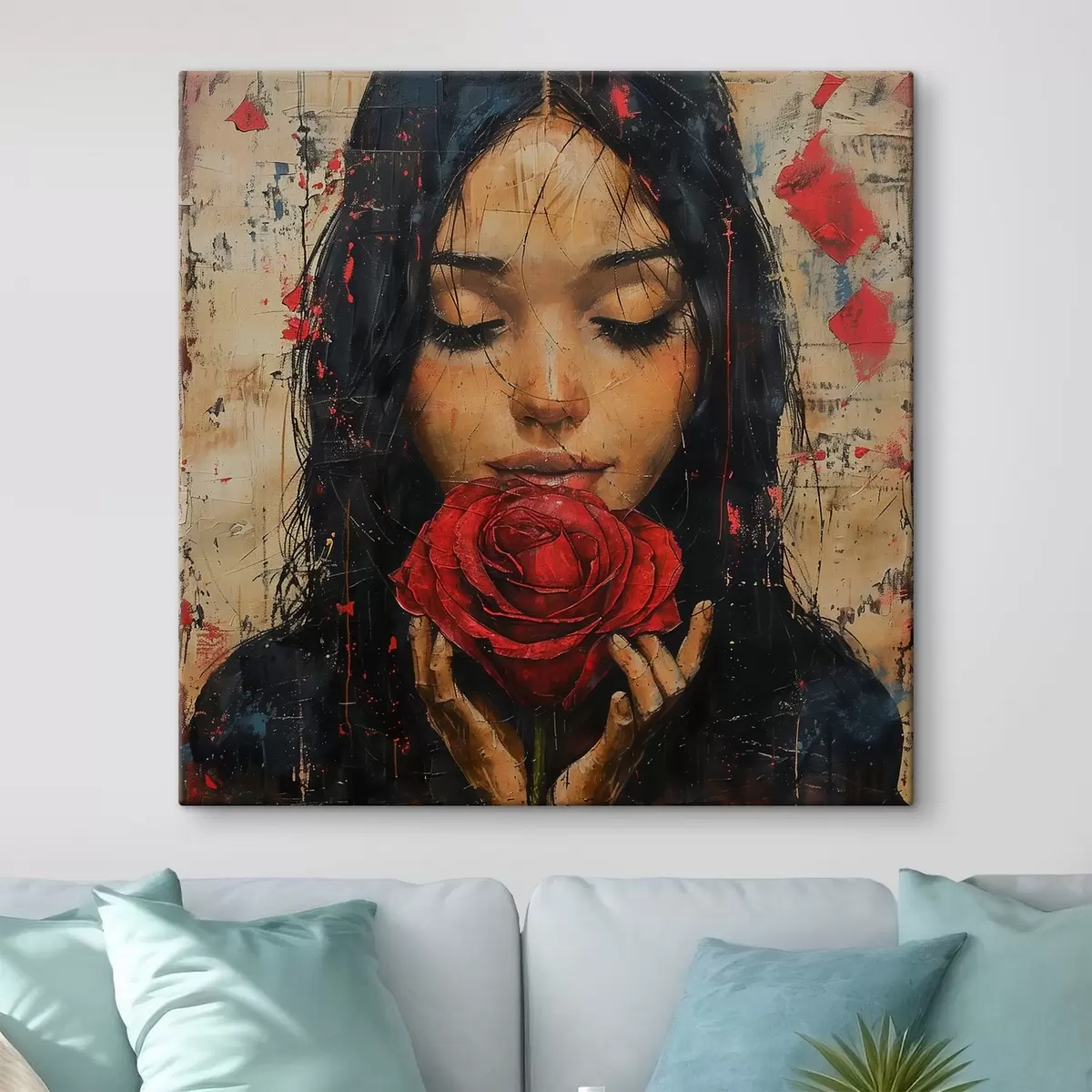 Gemälde Mädchen mit einer roten Rose Art. s40898