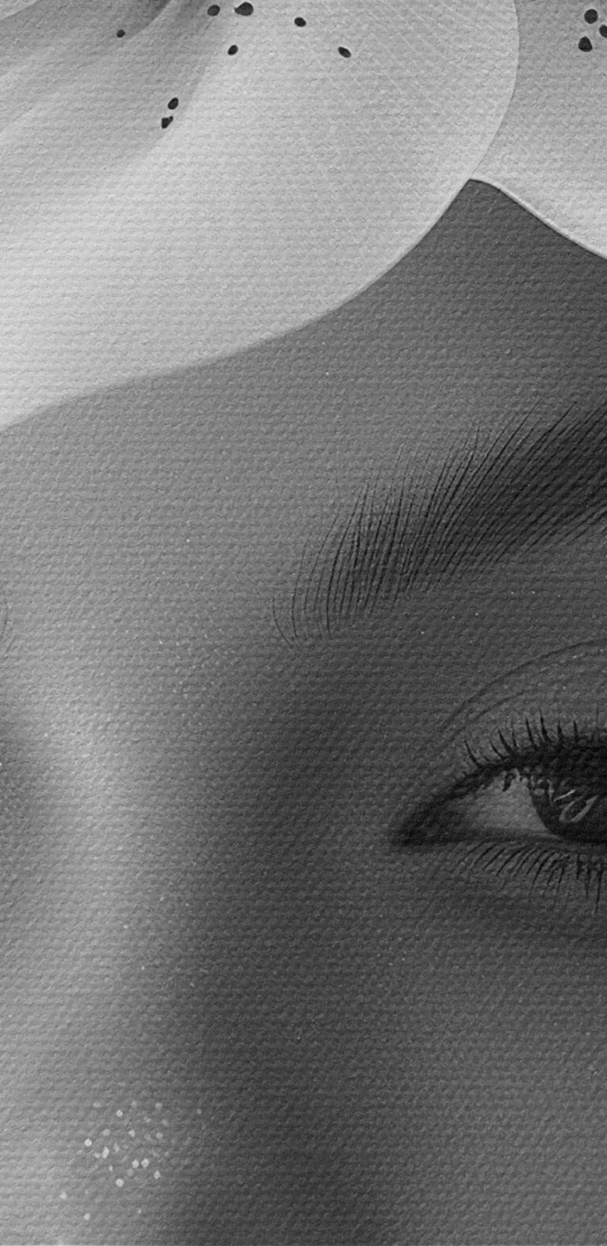 Gemälde Weiße große Lilien und das Gesicht eines Mädchens Art. s40937