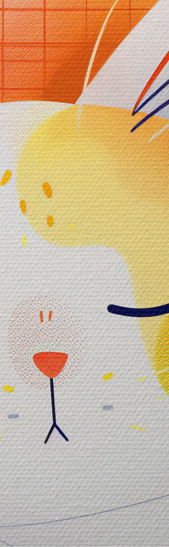 Fototapete Eine niedliche Katze, die zwischen Pflanzen schläft, in einem grafischen Stil s40956