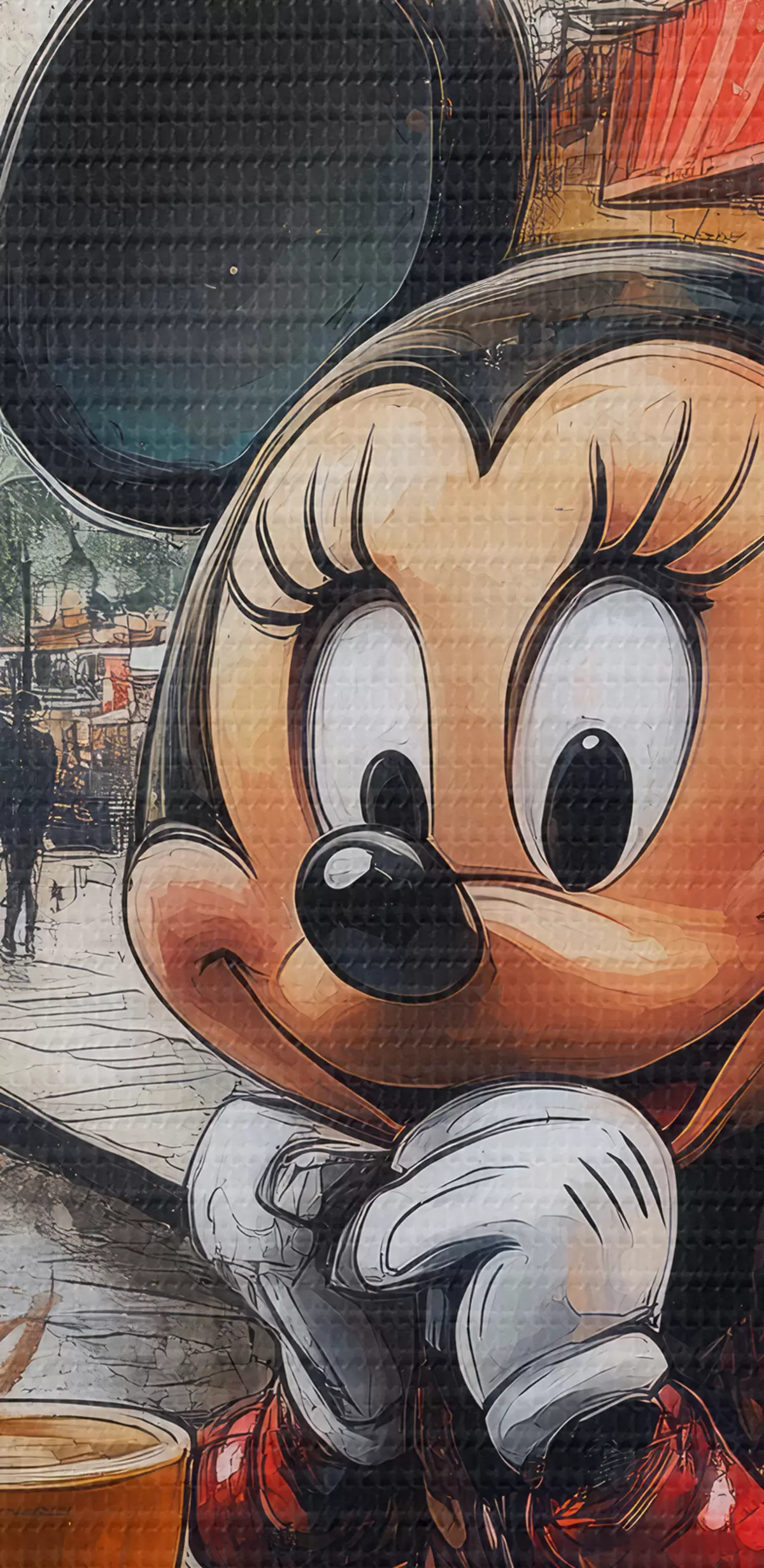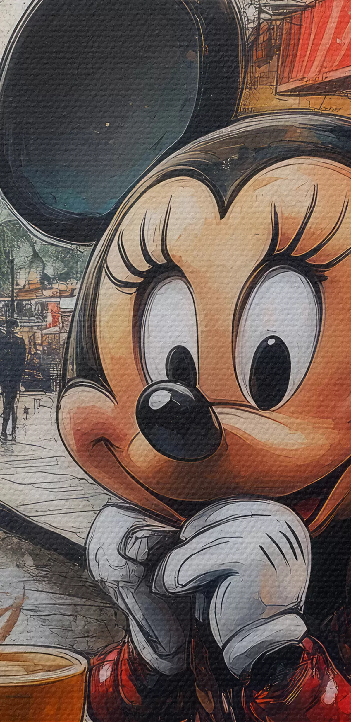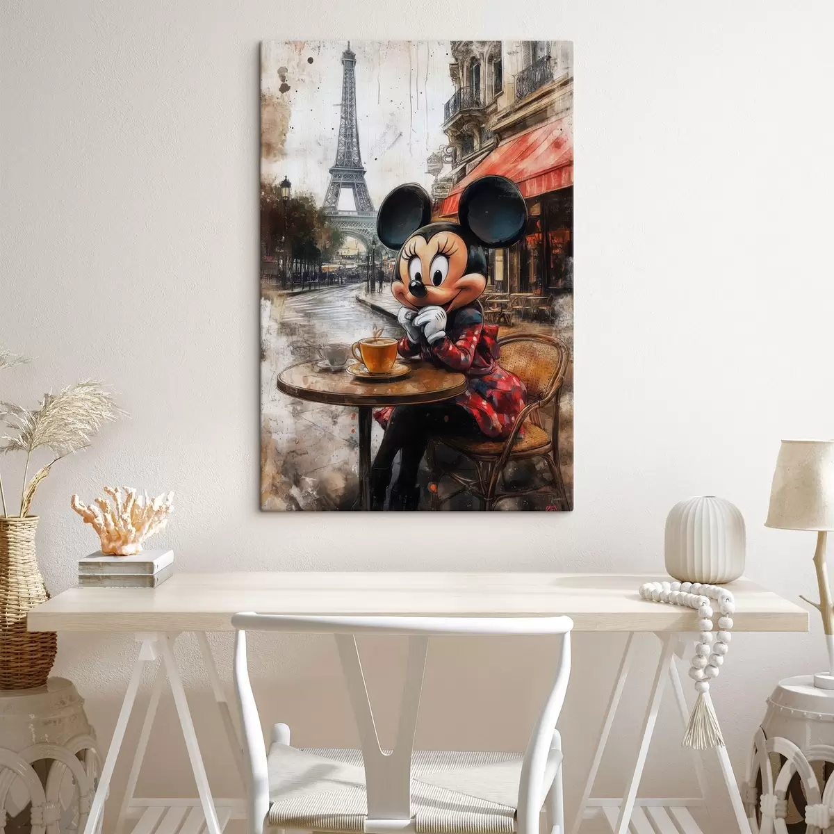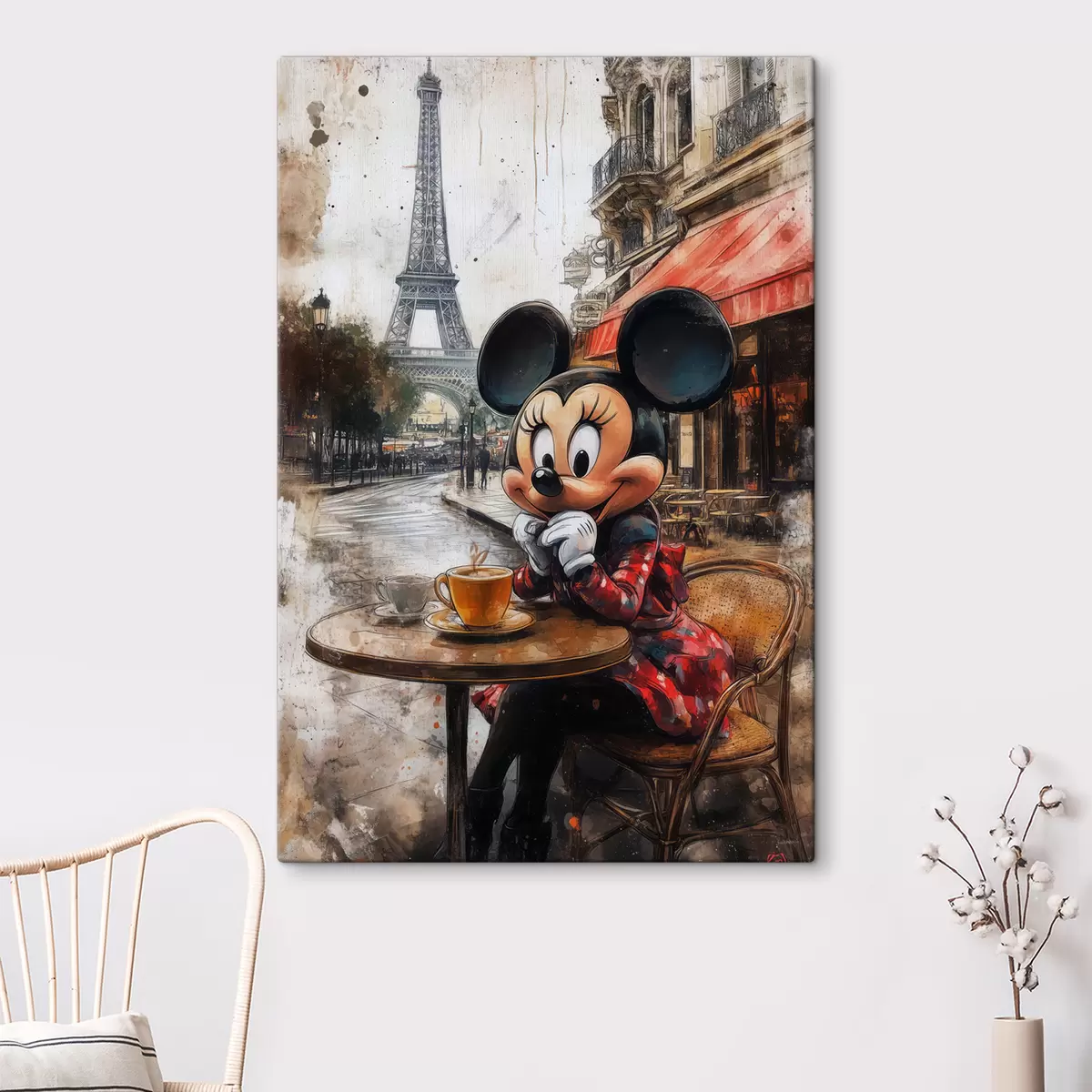 Gemälde Micky-Maus-Mädchen beim Kaffeetrinken vor dem Eiffelturm in Paris Art. s40972