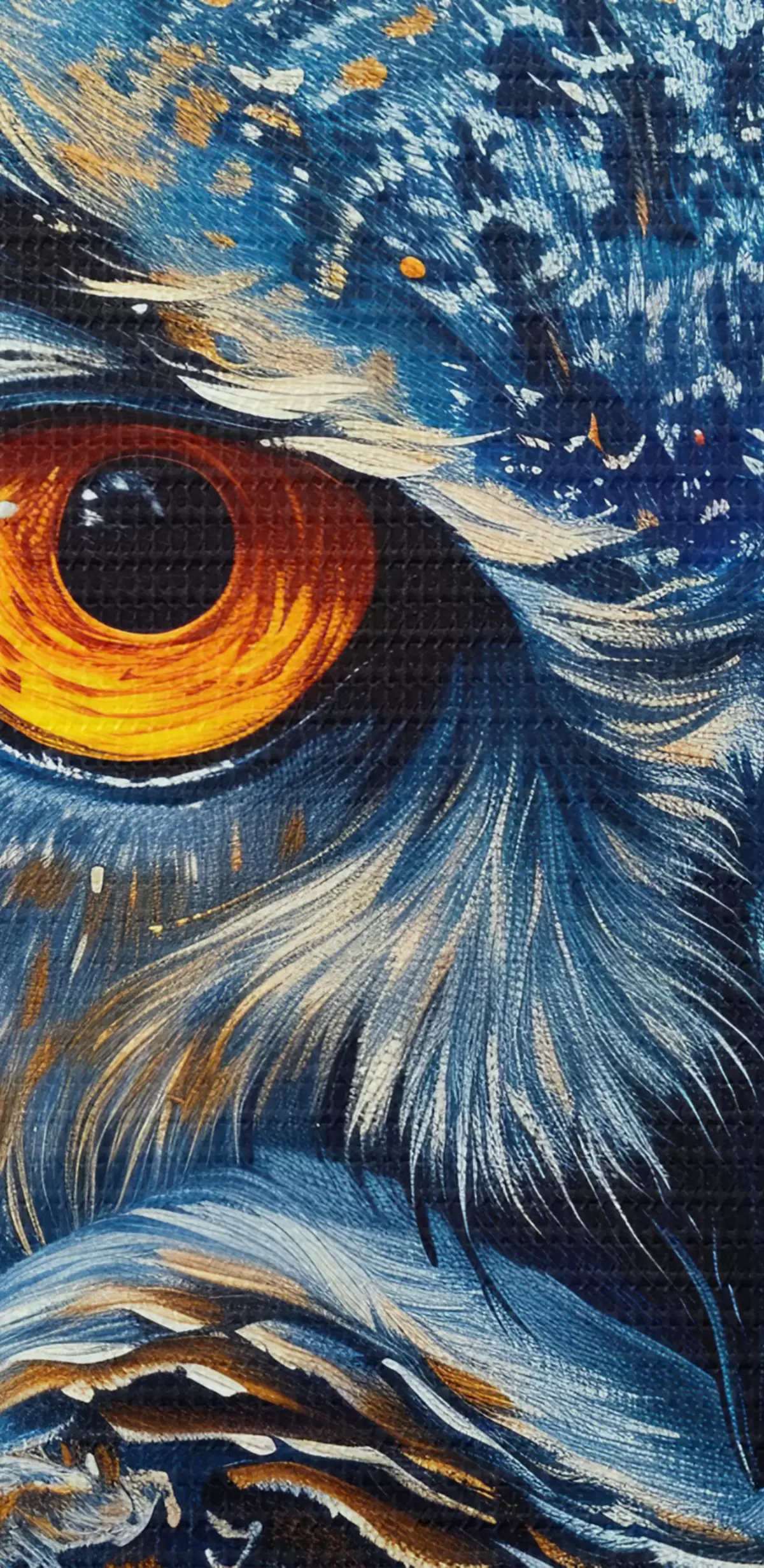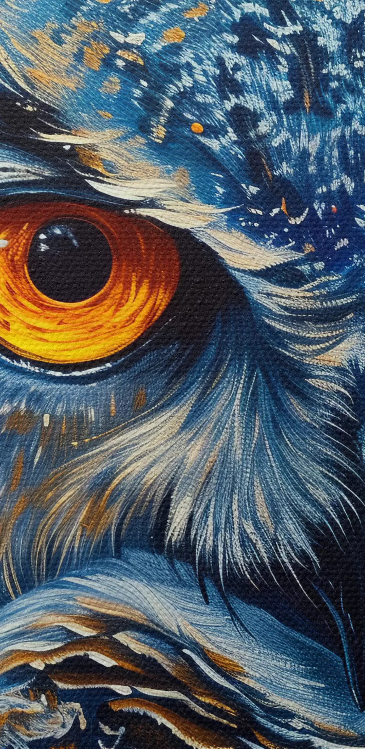 Fototapete Der Blick einer Eule bei Nacht mit einem Himmel im Van-Gogh-Stil s40982