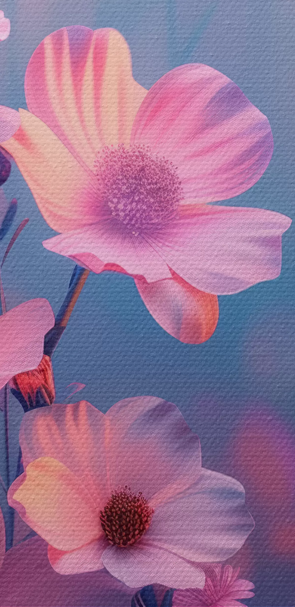 Drei Materialtypen stehen zur Verfügung: Economic Canvas - ein dichtes und haltbares Material für den Digitaldruck, identisch mit Malerleinwand, wasserfeste Oberfläche, realistische Wiedergabe von Details, mittelkörniges Material. Premium Canvas - die Textur ähnelt der einer Malerleinwand (verwobene kleine Fäden). Weiche, detaillierte Wiedergabe des Bildes auf einer matten Oberfläche. Eco-Premium - hochwertiges Gewebe aus 100% Baumwolle. Dank der natürlichen Baumwollfasern ist das Material langlebig und verschleißfest. Hervorragende Farbwiedergabe und Detailtreue.