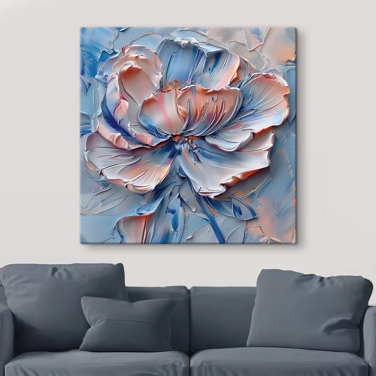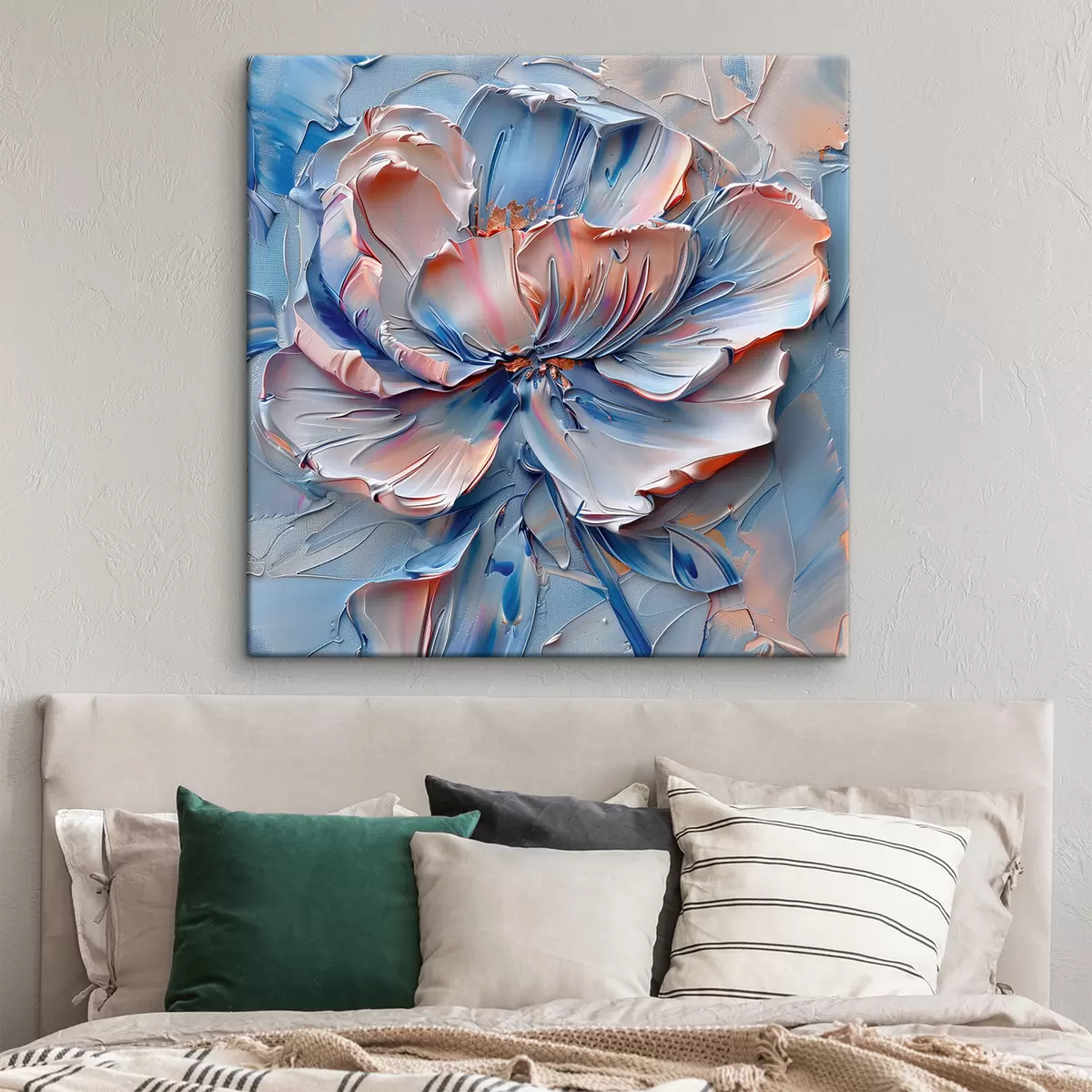 Gemälde Große Blume mit kräftigen Pinselstrichen in Blau und Pfirsichfarben Art. s41004
