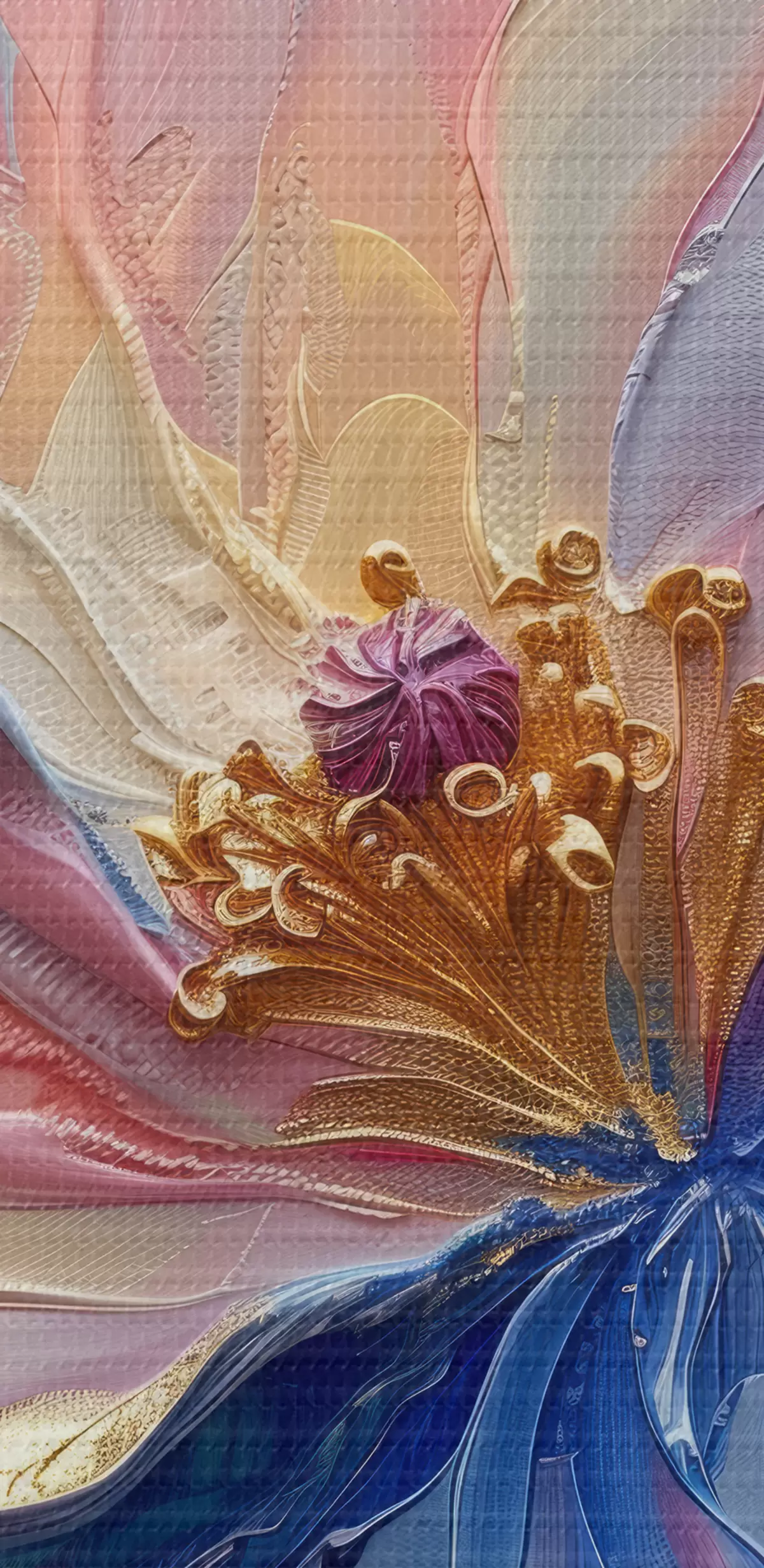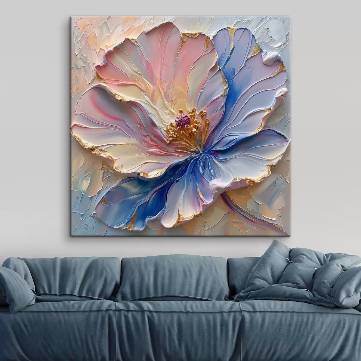 Gemälde Eine große Blume in zarten Rosa- und Blautönen Art. s41006