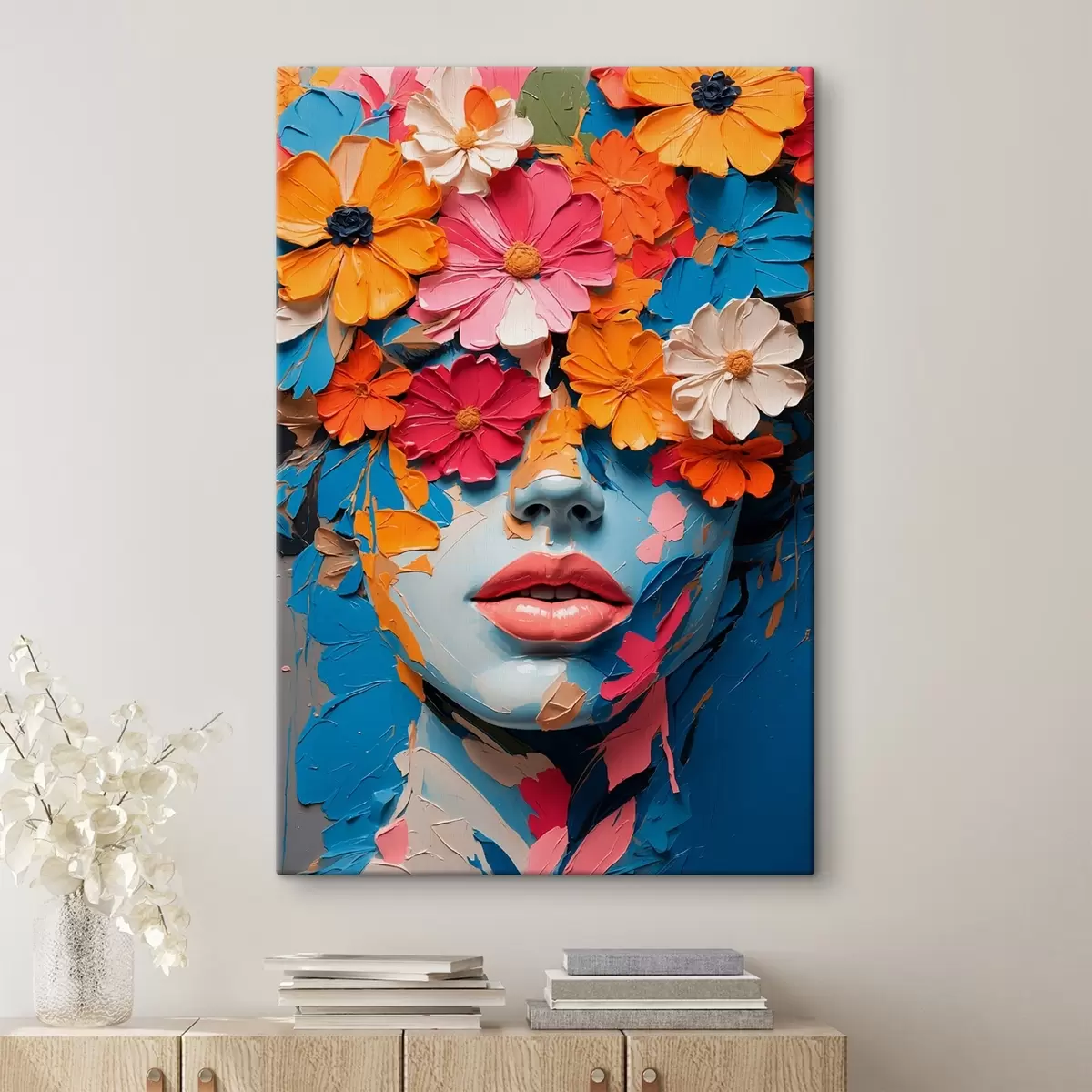 Gemälde Gesicht eines Mädchens in Öl mit Blumen bedeckt Art. s41023