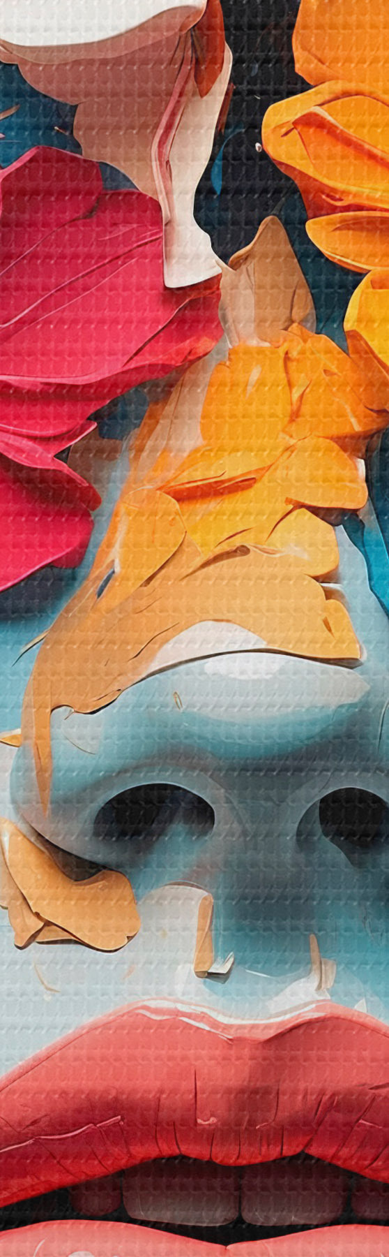 Fototapete Gesicht eines Mädchens in Öl mit Blumen bedeckt s41023