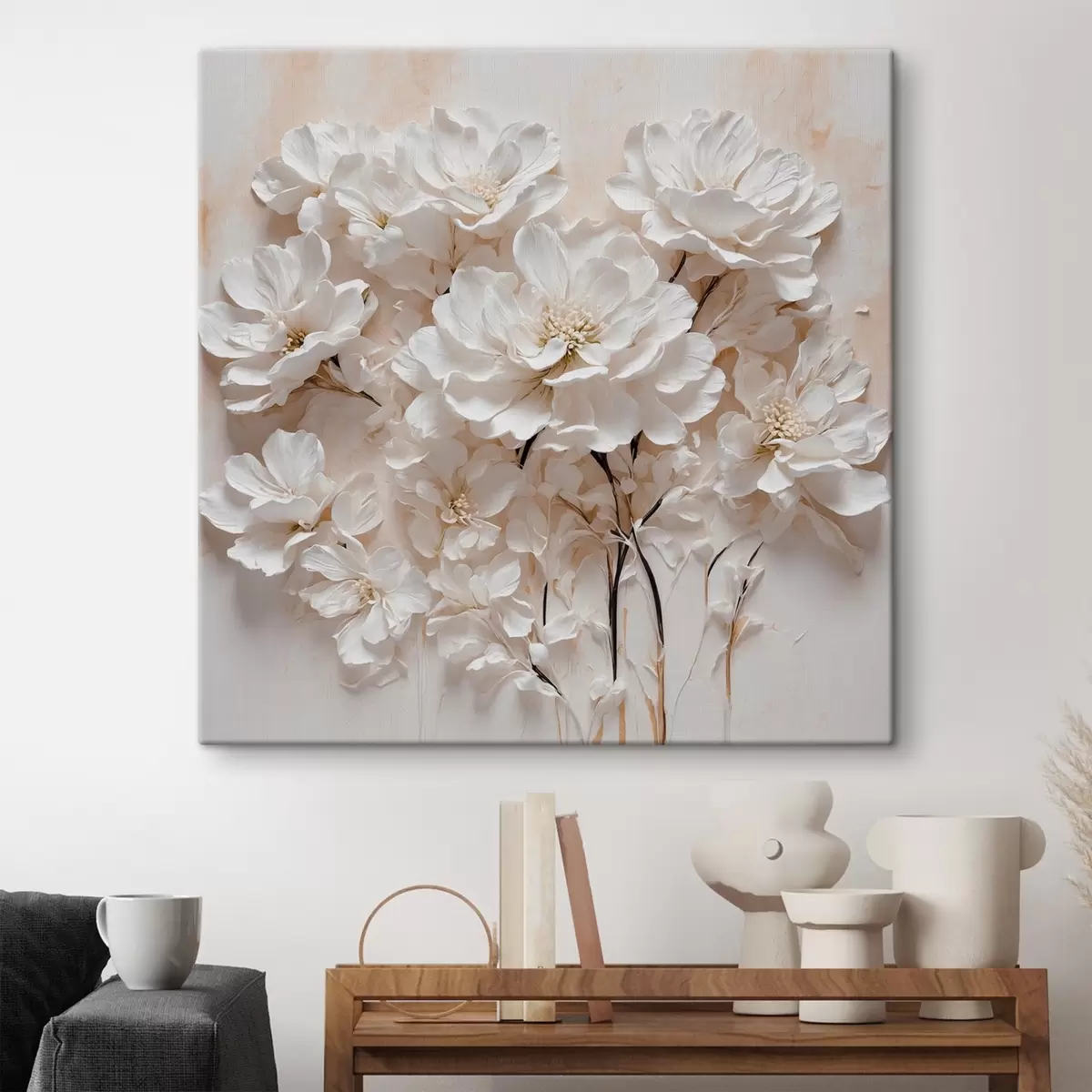Gemälde Weiße Blumen auf weiß-orangem Hintergrund Art. s41042