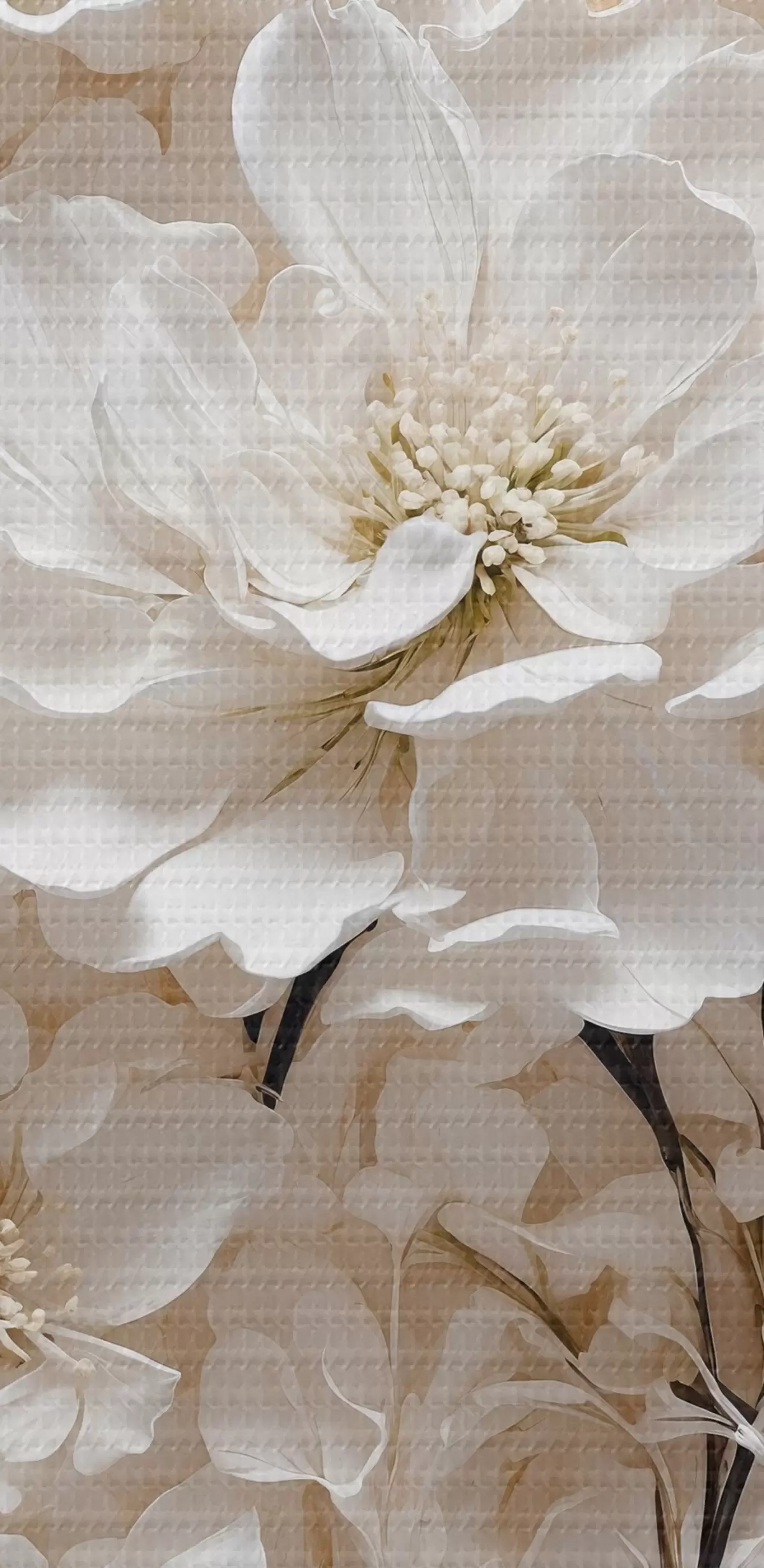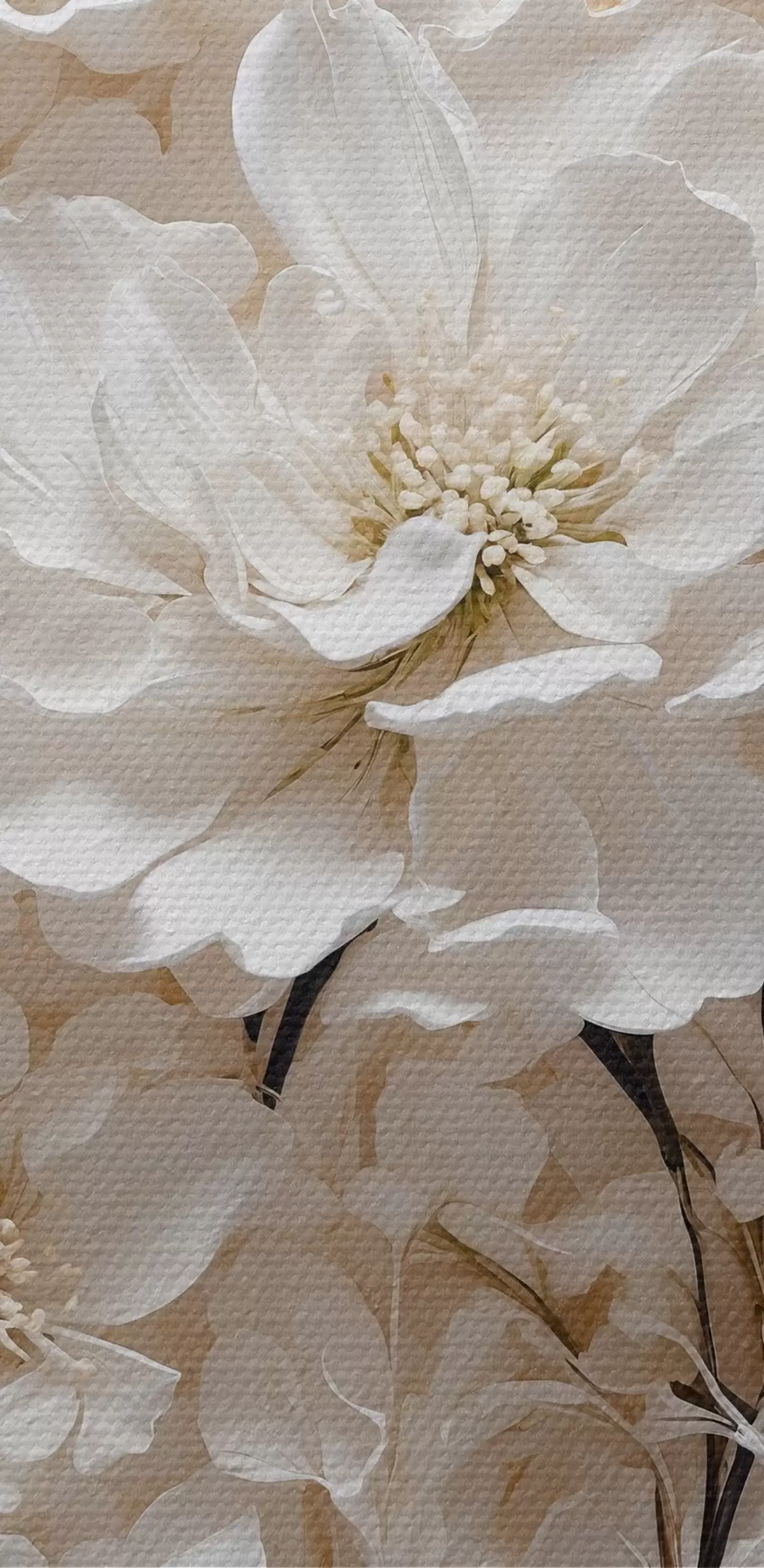 Fototapete Weiße Blumen auf weiß-orangem Hintergrund s41042