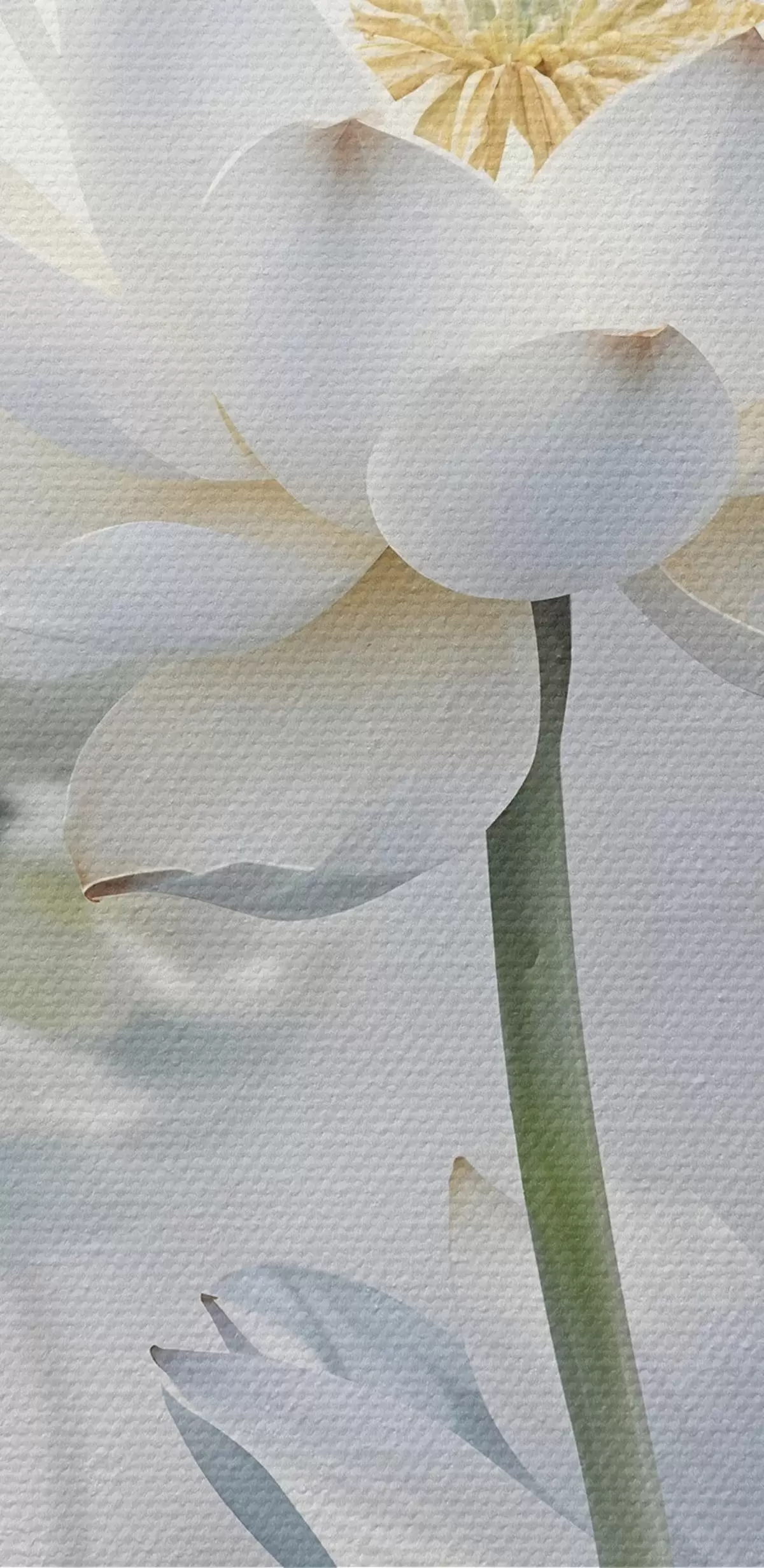 Fototapete Weiße pastellfarbene Lotosblumen in einem nebligen abstrakten aquarellierten Hintergrund s41100