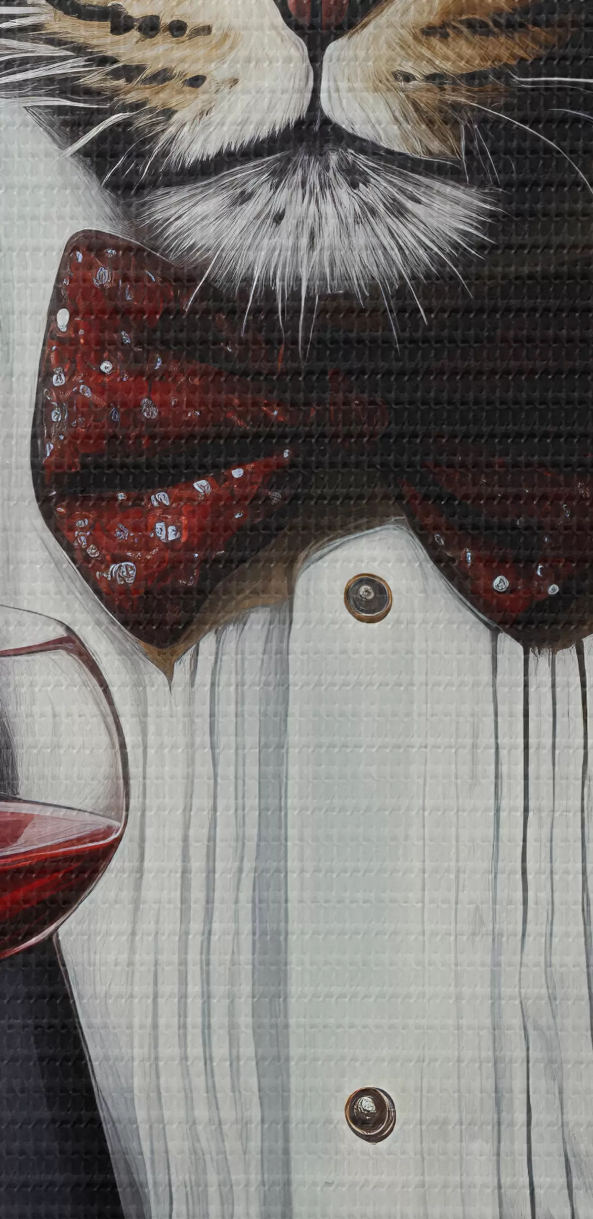 Das Bild kann vorsichtig mit einem trockenen, weichen Tuch oder Schwamm abgewischt werden; es wird nicht empfohlen, feuchte Produkte zu verwenden. Die Verwendung eines feuchten Schwamms ist nur zulässig, wenn das Bild lackiert wurde.