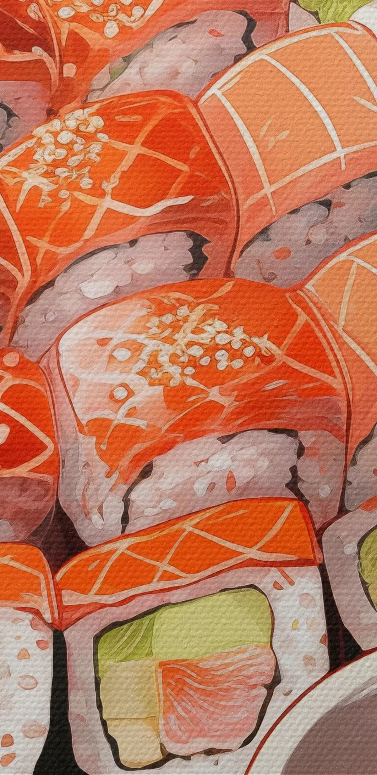 Gemälde Aquarell Teller mit Sushi, Lachs, lecker Art. s41180