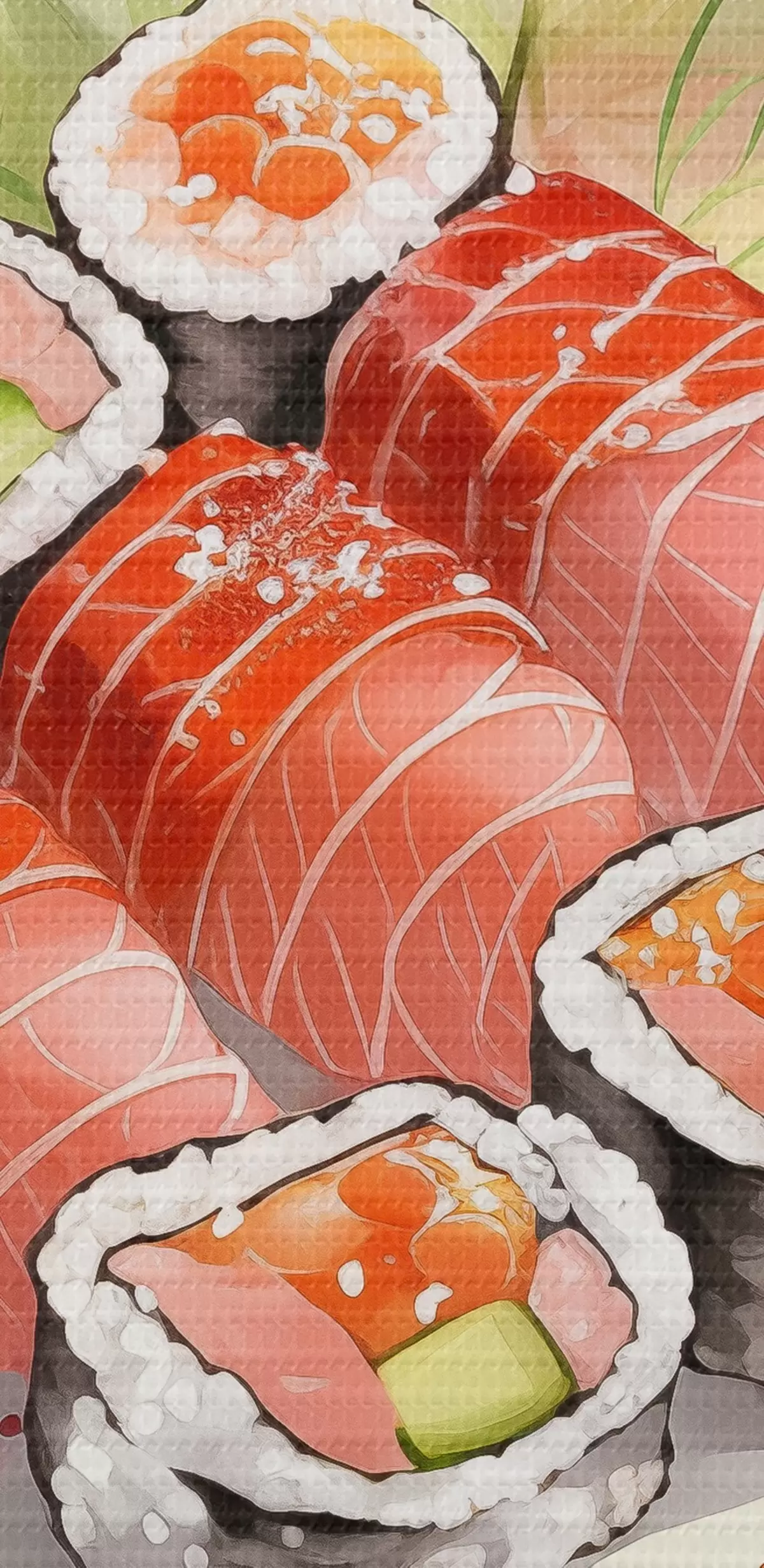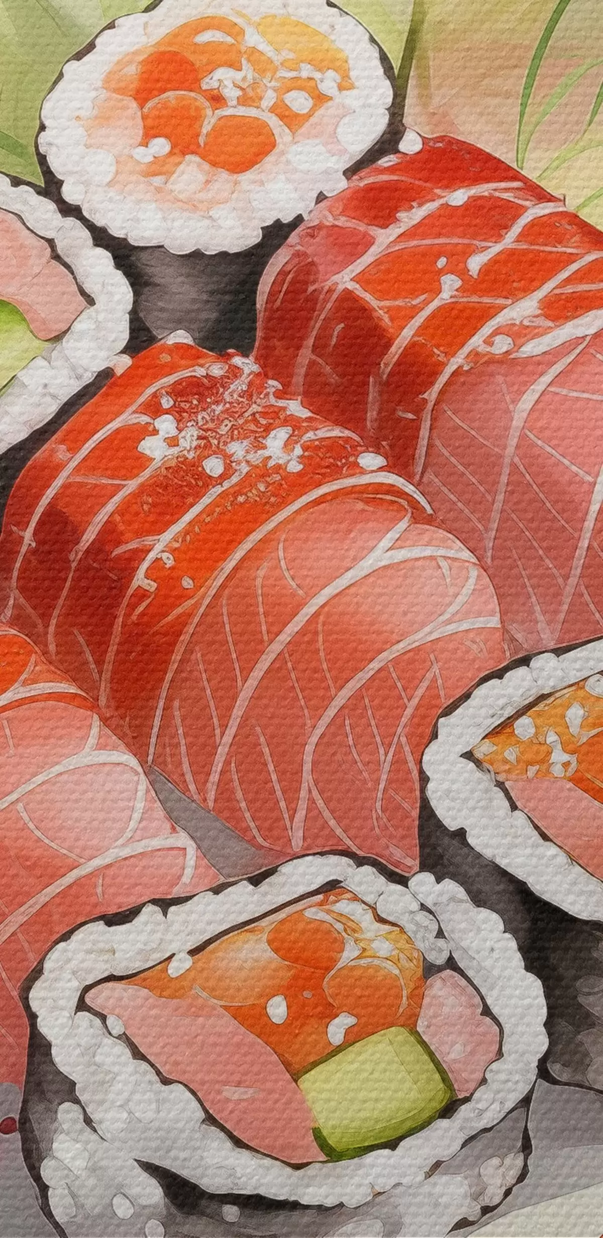 Gemälde Aquarell Sushi, blumig, japanisch Art. s41181