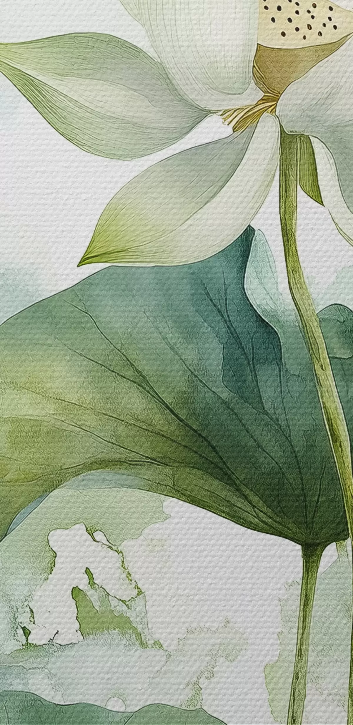 Gemälde Aquarellierte Lotusblumen, üppiges Grün Art. s41226