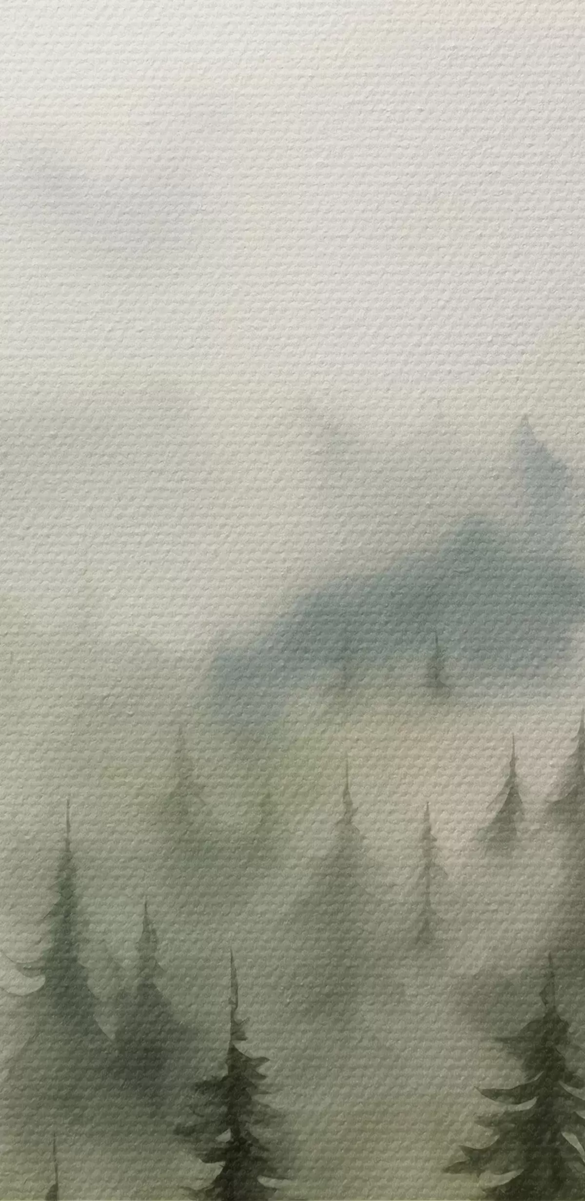 Gemälde Grüner Wald auf dem Hintergrund der Berge Berge und Nebel Aquarell Art. s41241