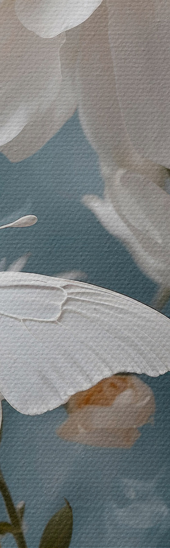 Gemälde Weiße Blumen und Schmetterling auf unscharfem Hintergrund Art. s41312