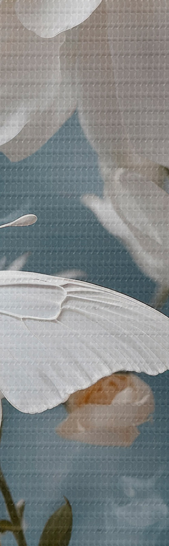 Fototapete Weiße Blumen und Schmetterling auf unscharfem Hintergrund s41312