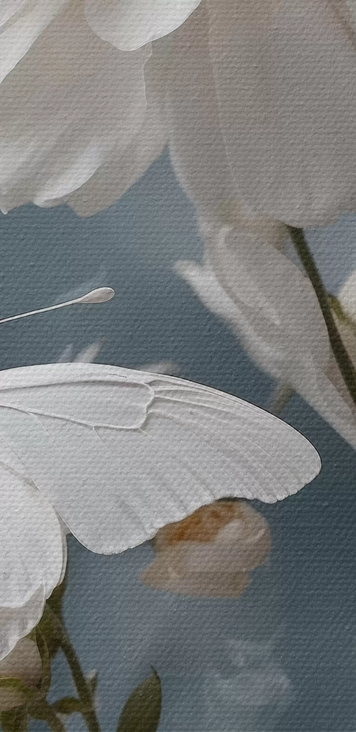 Gemälde Weiße Blumen und Schmetterling auf unscharfem Hintergrund Art. s41312