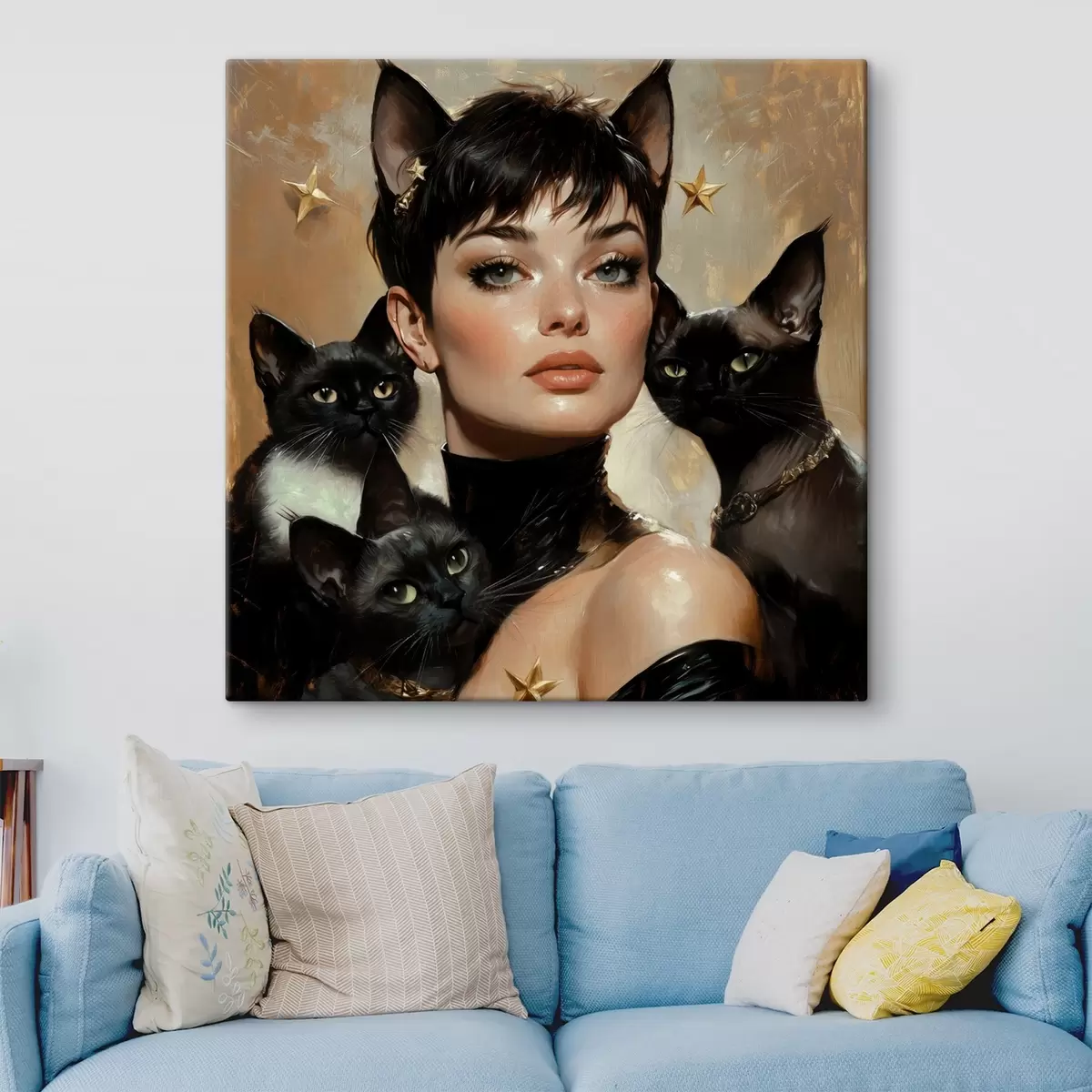 Gemälde Katzenmädchen mit schwarzen Katzen Art. s41344