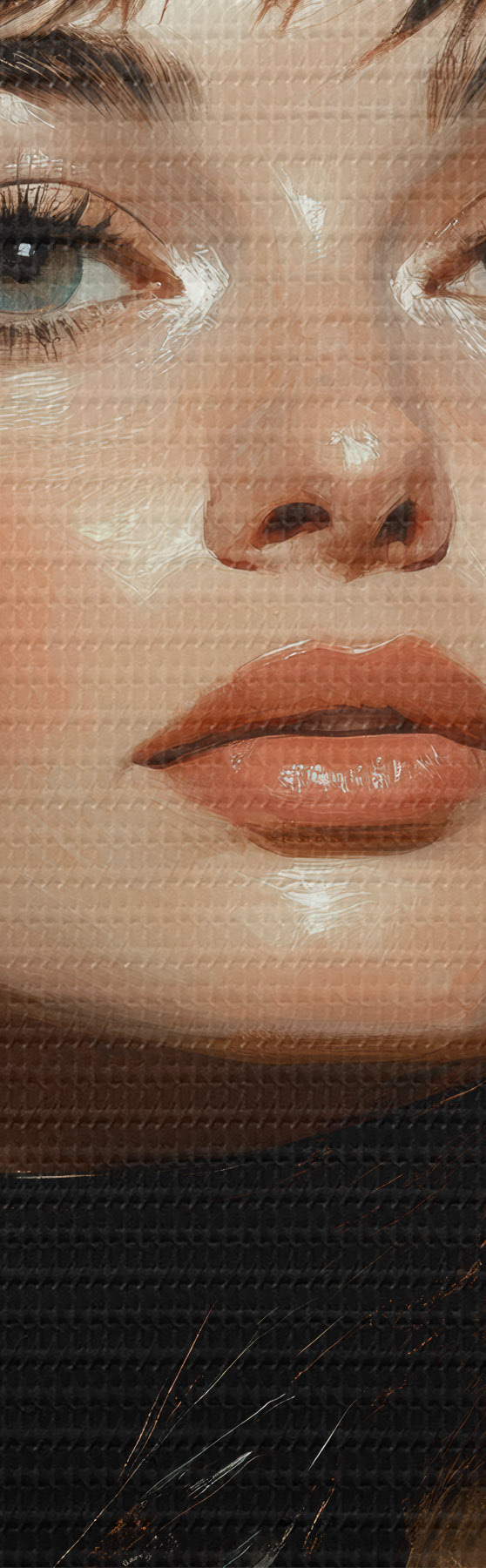 Drei Materialtypen stehen zur Verfügung: Economic Canvas - ein dichtes und haltbares Material für den Digitaldruck, identisch mit Malerleinwand, wasserfeste Oberfläche, realistische Wiedergabe von Details, mittelkörniges Material. Premium Canvas - die Textur ähnelt der einer Malerleinwand (verwobene kleine Fäden). Weiche, detaillierte Wiedergabe des Bildes auf einer matten Oberfläche. Eco-Premium - hochwertiges Gewebe aus 100% Baumwolle. Dank der natürlichen Baumwollfasern ist das Material langlebig und verschleißfest. Hervorragende Farbwiedergabe und Detailtreue.